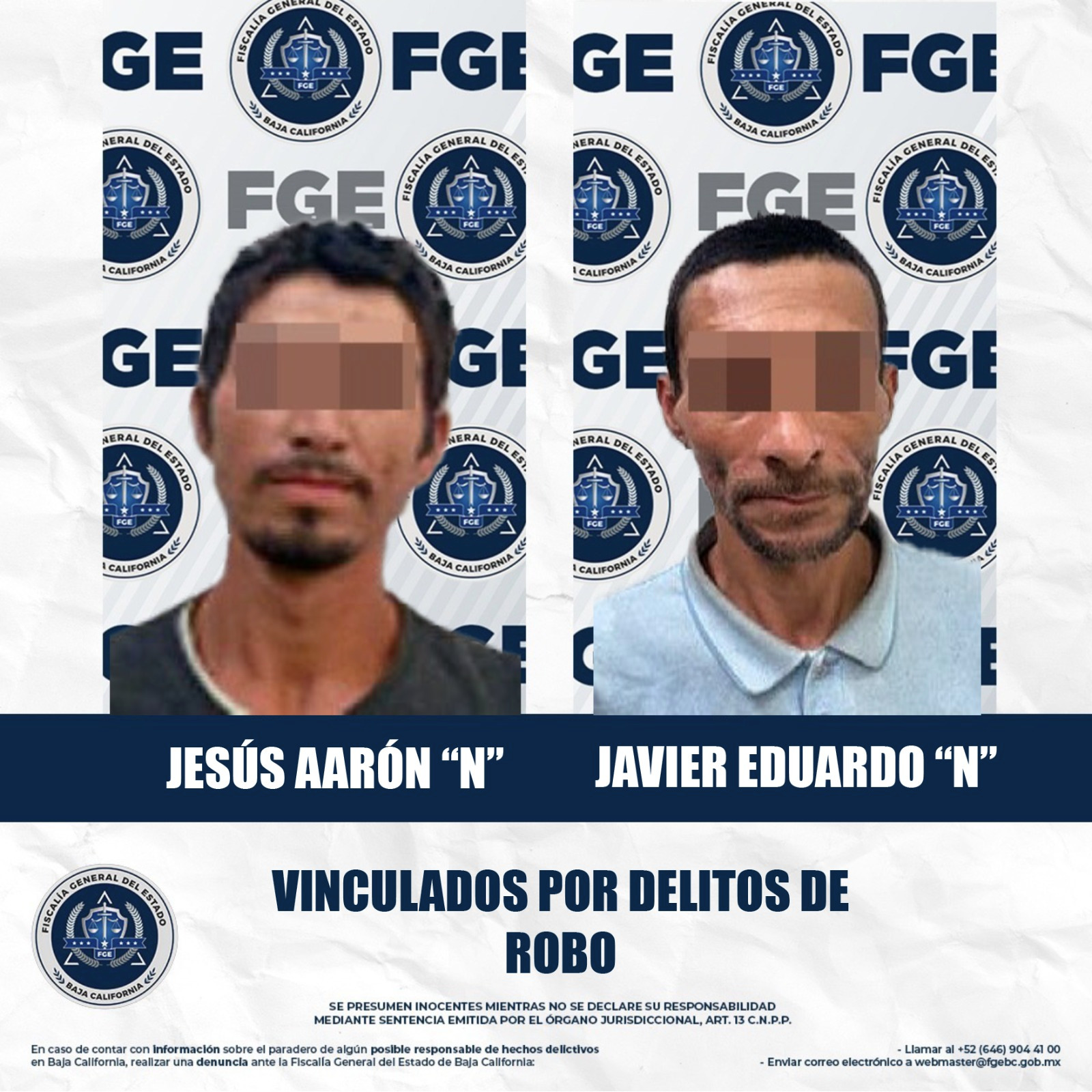 MEXICALI, BAJA CALIFORNIA. - La Fiscalía Regional de Mexicali, a través de las Unidades de Investigación con Detenidos Poniente y Robo Poniente, obtuvo prisión preventiva en contra de dos hombres relacionados en incidentes de robo.