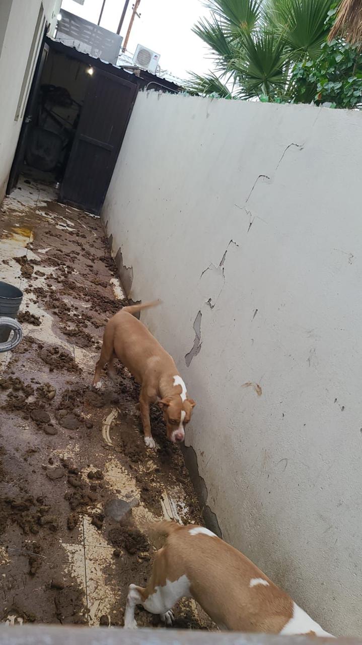 En el operativo efectuado en un domicilio ubicado en avenida Juan Escutia, en la colonia Roma, se localizaron dos mascotas de raza pitbull, color café con manchas blancas, de tamaño mediano, las cuales presentaban signos de abandono.