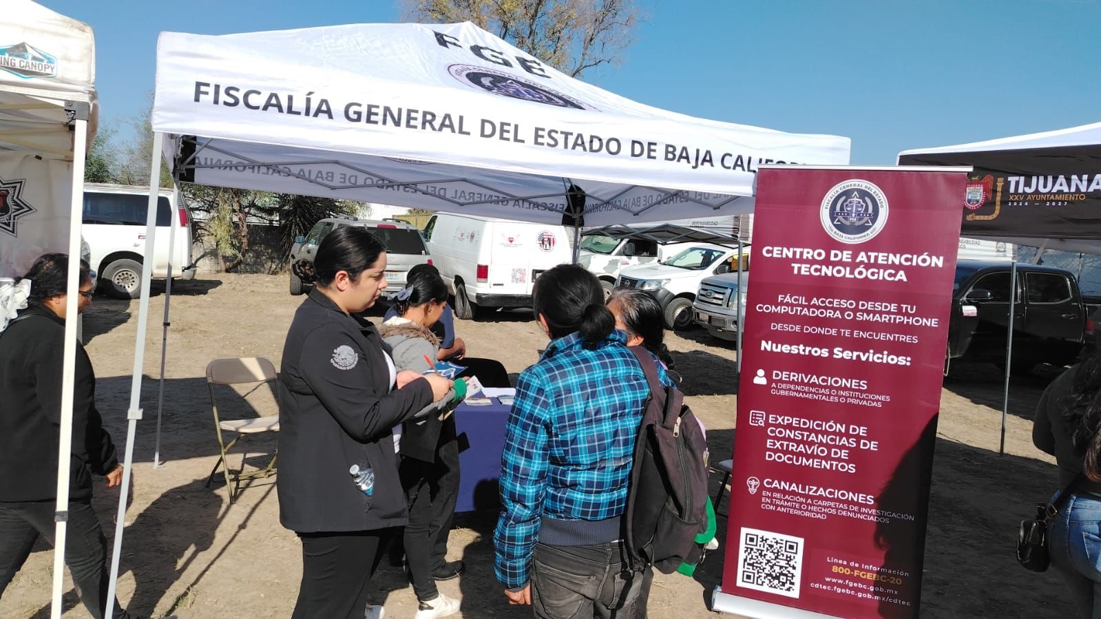 TIJUANA, BAJA CALIFORNIA. - En cumplimiento de la instrucción de la Fiscal General del Estado, Dra. Ma. Elena Andrade Ramírez, de fortalecer la cercanía con la comunidad y promover una atención directa a la ciudadanía, la Institución participó recientemente en la Jornada de Bienestar realizada en la colonia Fortín de las Flores, organizada por el Ayuntamiento de Tijuana.