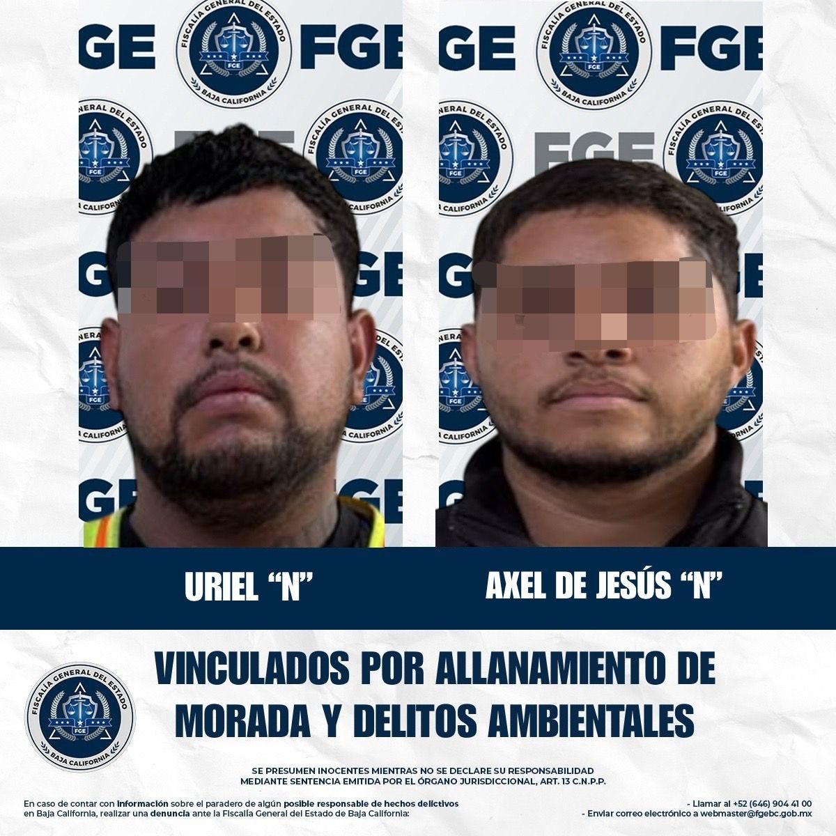 TIJUANA, BAJA CALIFORNIA. - La Fiscalía General del Estado, bajo el liderazgo de su titular, la Dra. Ma. Elena Andrade Ramírez, reafirma su compromiso de llevar ante la ley a toda persona que cometa un delito. En seguimiento a estas directrices, la Fiscalía Regional Tijuana y la Fiscalía Especializada en Delitos Ambientales y Contra los Animales lograron obtener la vinculación a proceso de Axel de Jesús “N” y Uriel “N” por los delitos de allanamiento de morada, daño en propiedad ajena y delito ambiental por el depósito de residuos sin autorización.