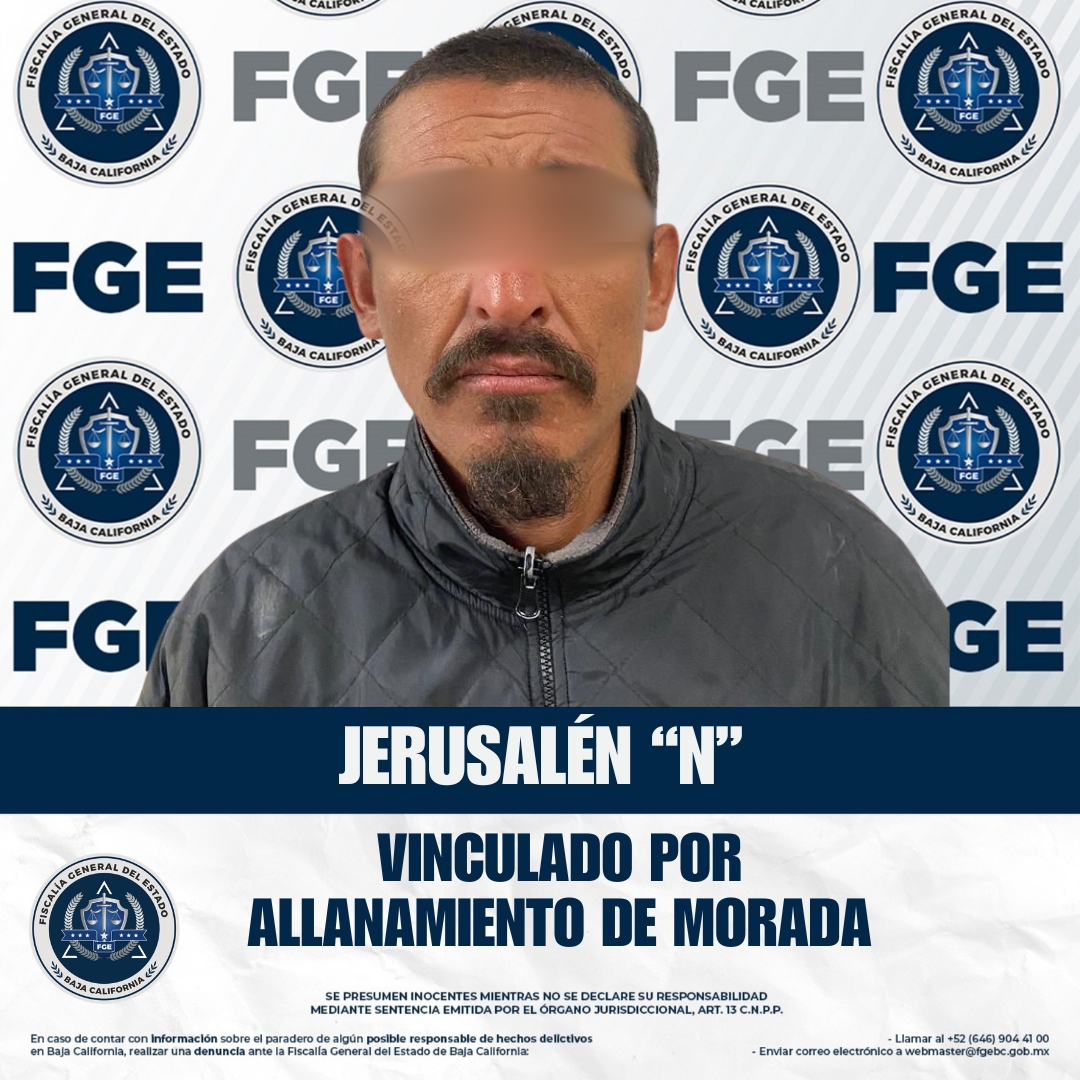 ENSENADA, BAJA CALIFORNIA. - La Fiscalía Regional de Ensenada, en coordinación con la Unidad de Investigación con Detenido, realizó la vinculación de Jerusalén “N” por el delito de allanamiento de morada.