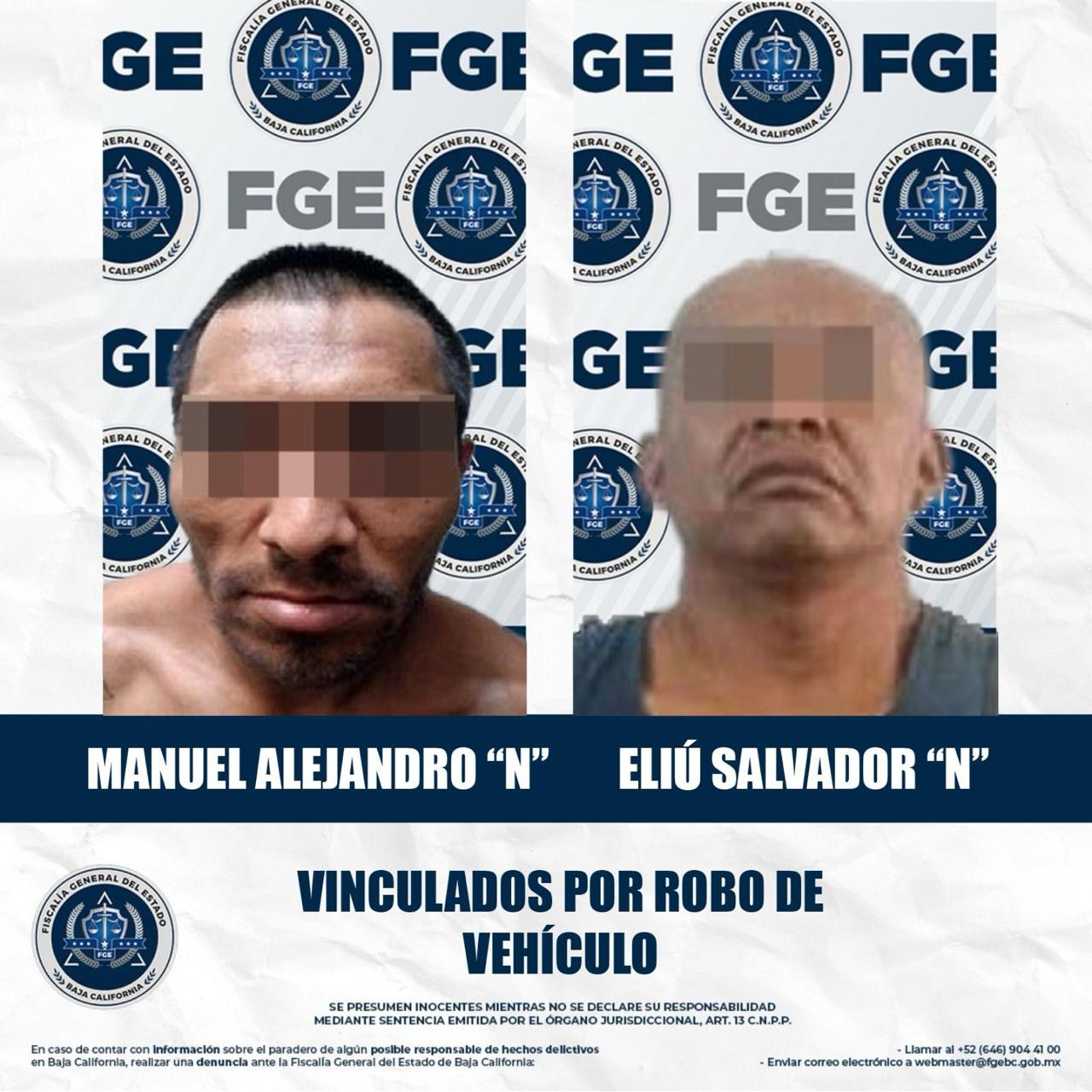 MEXICALI, BAJA CALIFORNIA. - La Fiscalía Regional de Mexicali, a través de la Unidad de Investigación de Robo de Vehículos, obtuvo la vinculación a proceso en contra de dos hombres relacionados con el delito de robo de vehículo.