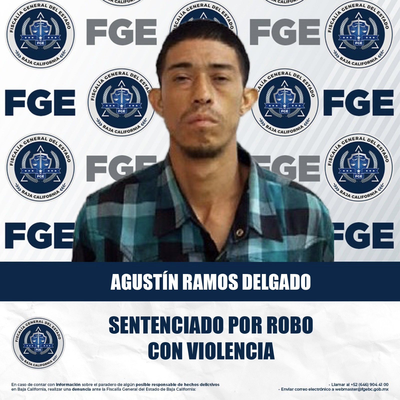 MEXICALI, BAJA CALIFORNIA. - La Fiscalía General del Estado, a través de la Fiscalía Regional de Mexicali y la Unidad de Investigación de Delitos de Robo Oriente, obtuvo una sentencia condenatoria en contra de Agustín Ramos Delgado, por el delito de robo calificado cometido en establecimiento comercial abierto al público con violencia.