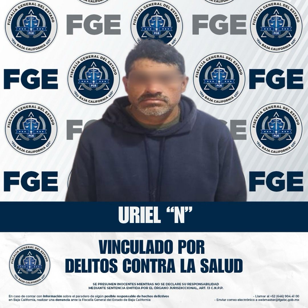 ENSENADA, BAJA CALIFORNIA. - Tras los datos de prueba presentados ante el Juez de Control por el Ministerio Público de la Fiscalía Especializada en Narcomenudeo, la Fiscalía General del Estado logró la vinculación a proceso de Uriel “N” por el delito contra la salud, en su modalidad de posesión de psicotrópico.