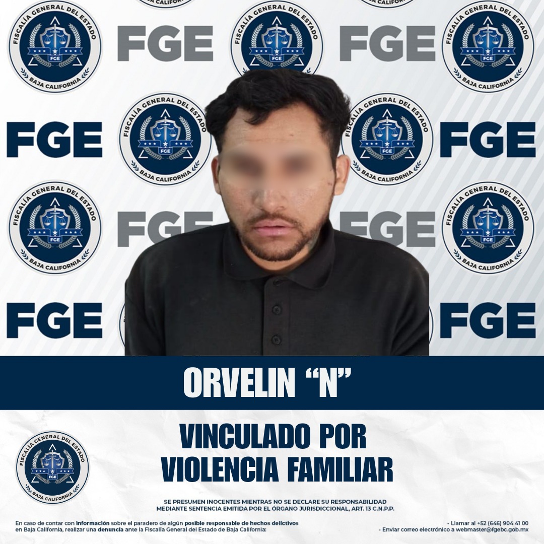 ENSENADA, BAJA CALIFORNIA. - La Fiscalía Regional de Ensenada logró la vinculación a proceso de Orvelin “N” por el delito de violencia familiar, tras la presentación de datos de prueba ante un juez de control.