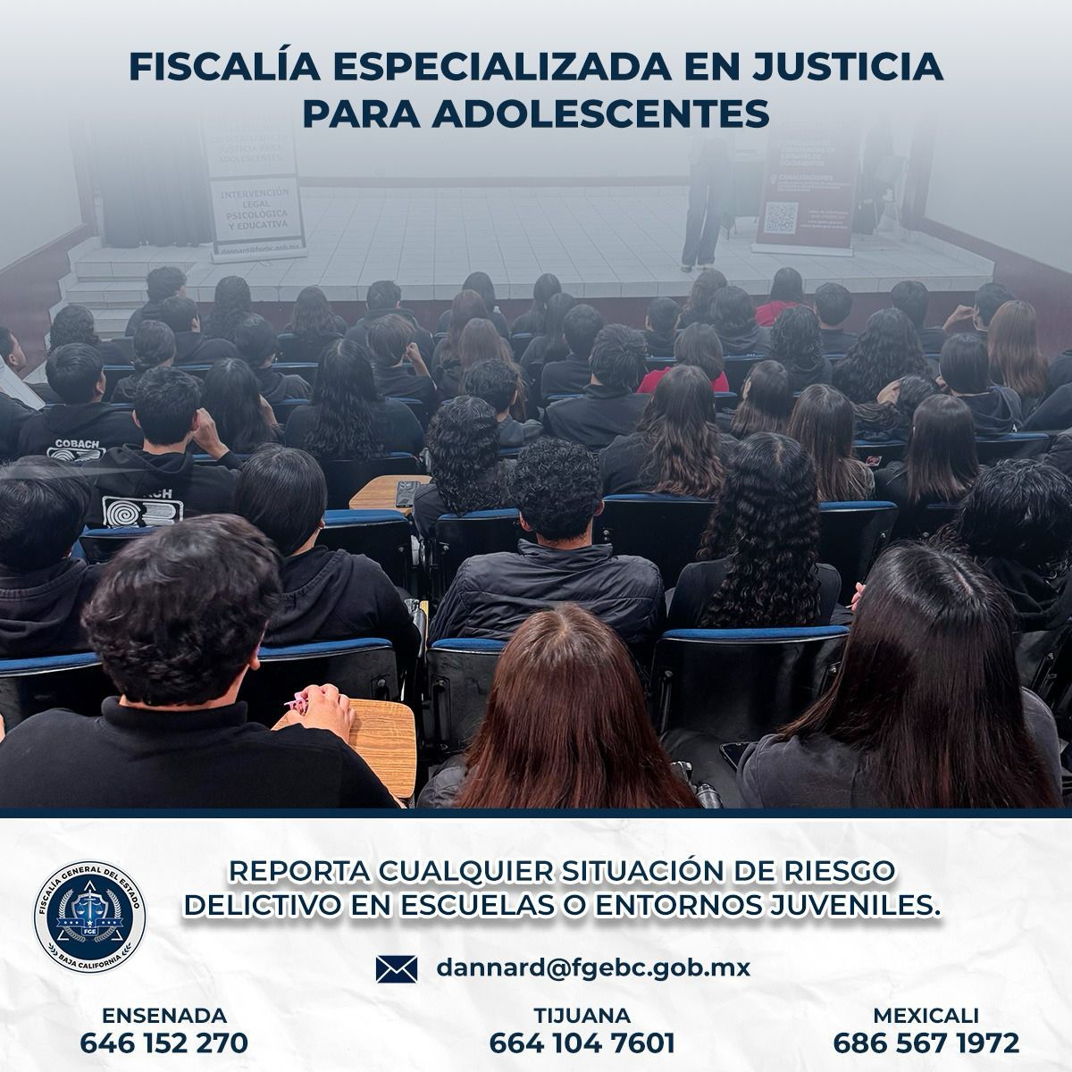 TIJUANA, BAJA CALIFORNIA. - La Fiscal General, Dra. Ma. Elena Andrade Ramírez, dio a conocer los avances registrados en el Sistema de Justicia Penal para Adolescentes y en la atención integral a niñas, niños y jóvenes en riesgo delictivo, en su comparecencia ante diputadas y diputados del Congreso del Estado.