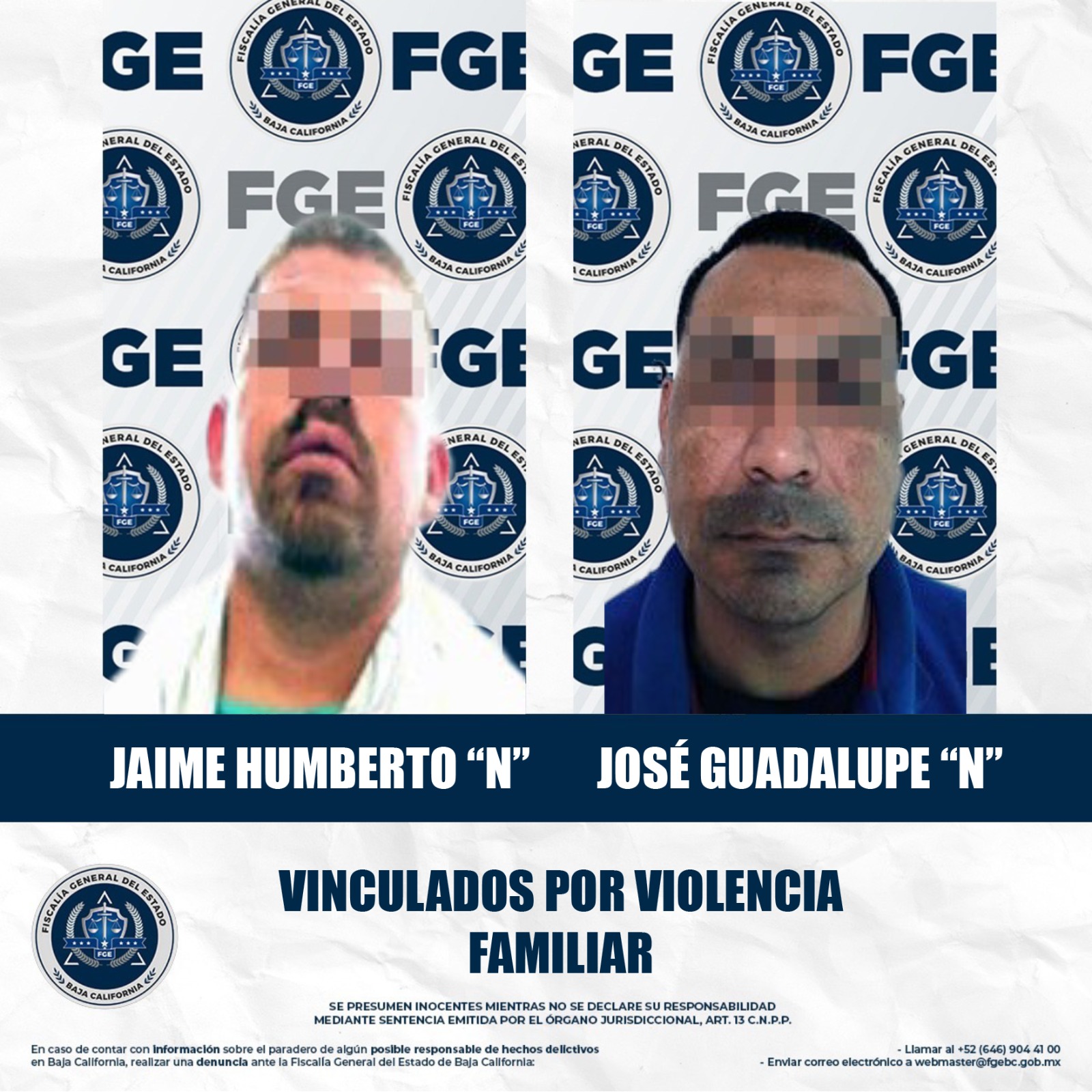 MEXICALI, BAJA CALIFORNIA. - La Fiscalía Regional de Mexicali, a través de las Unidades de Investigación Foránea de Guadalupe Victoria y Detenidos Oriente, obtuvo la vinculación a proceso de dos personas acusadas de violencia familiar, gracias a las pruebas presentadas por el Ministerio Público.