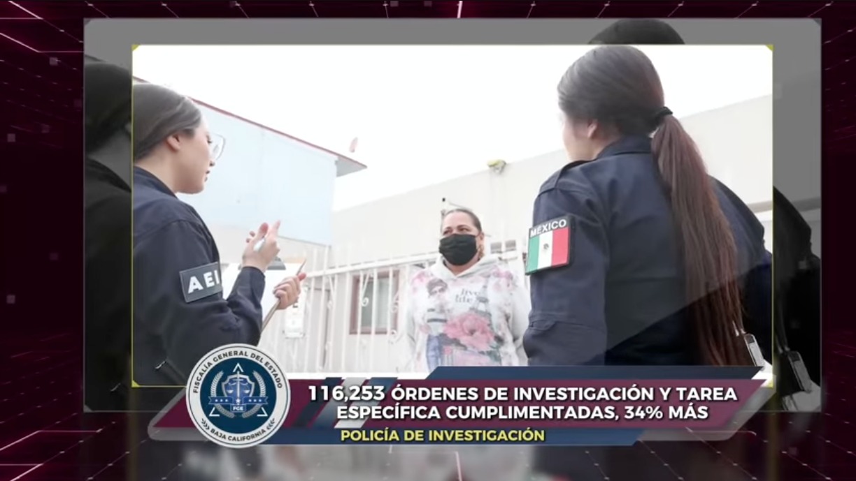TIJUANA, BAJA CALIFORNIA. - La Fiscalía General del Estado, encabezada por la Dra. Ma. Elena Andrade Ramírez, fortaleció durante 2025 las acciones de la AEI, alcanzando 116 mil 253 órdenes de investigación cumplimentadas, lo que representa un incremento del 34% en comparación con el año 2024.