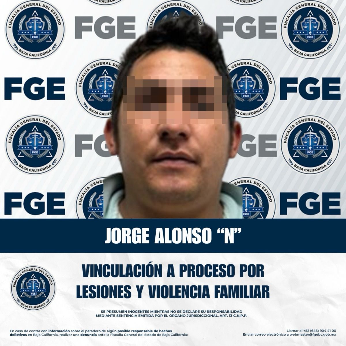 TIJUANA, BAJA CALIFORNIA. - La Fiscalía Regional de Tijuana, a través de la Unidad de Investigación con Detenido, obtuvo la vinculación a proceso de Jorge Alonso “N”, por su presunta responsabilidad en los delitos de lesiones agravadas y violencia familiar.