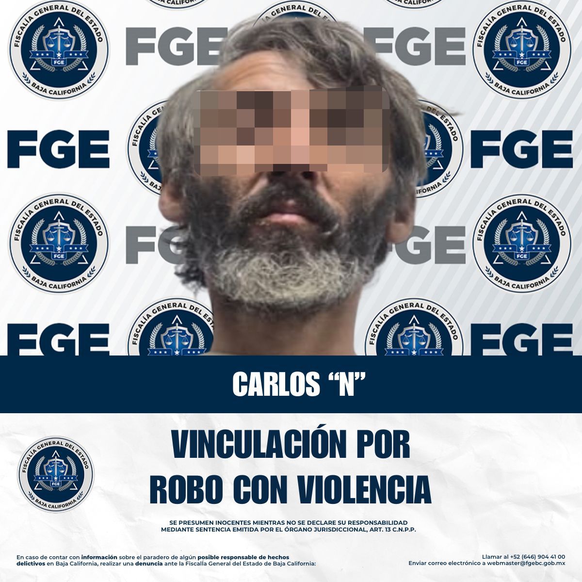 TIJUANA, BAJA CALIFORNIA. - La Fiscalía Regional de Tijuana, a través de las labores realizadas por la Unidad de Investigación con Detenido, logró la vinculación a proceso de Carlos “N” por su presunta responsabilidad en el delito de robo con violencia, derivado de hechos ocurridos en la colonia Los Álamos de esta ciudad.