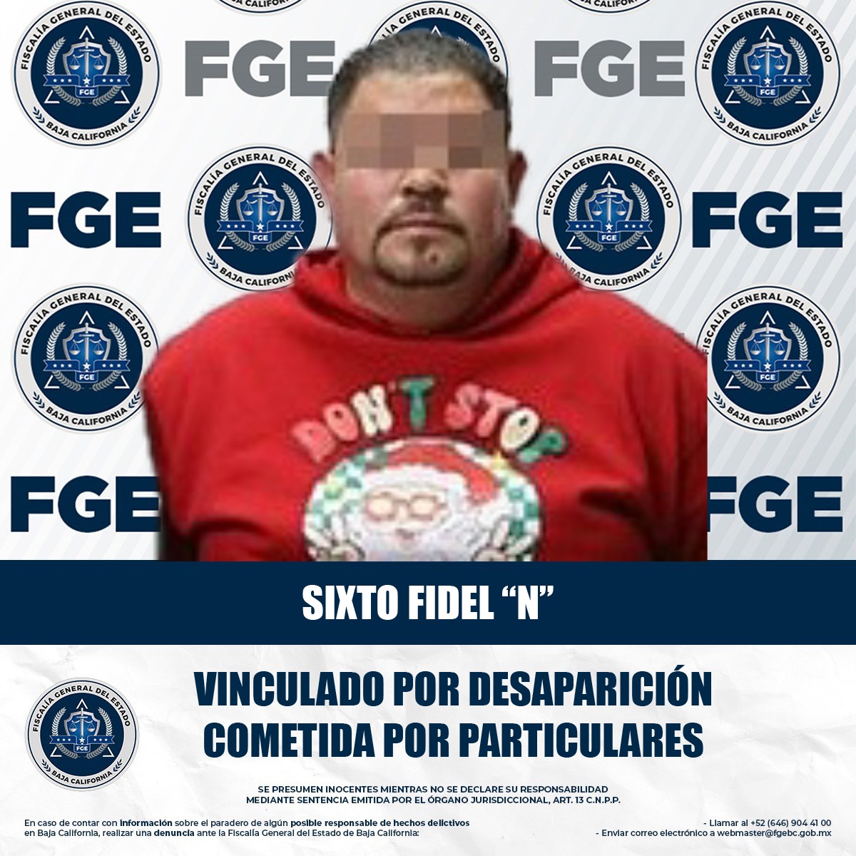 MEXICALI, BAJA CALIFORNIA. - Derivado de la correcta integración de la carpeta de investigación, la Fiscalía General del Estado (FGE) obtuvo la vinculación a proceso de un hombre presuntamente implicado en el delito de desaparición cometida por particulares, registrado el pasado 17 de septiembre.