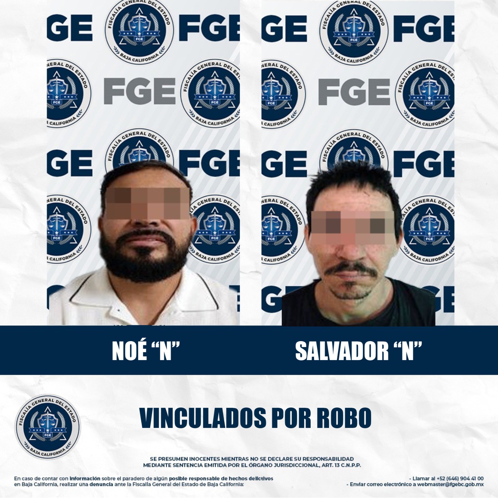 MEXICALI, BAJA CALIFORNIA. - Dos hombres acusados de participar en delitos de robo fueron vinculados a proceso con base en los elementos de prueba presentados por la Fiscalía Regional de Mexicali, a través de las Unidades de Investigación de Robo Poniente y Detenidos Oriente.