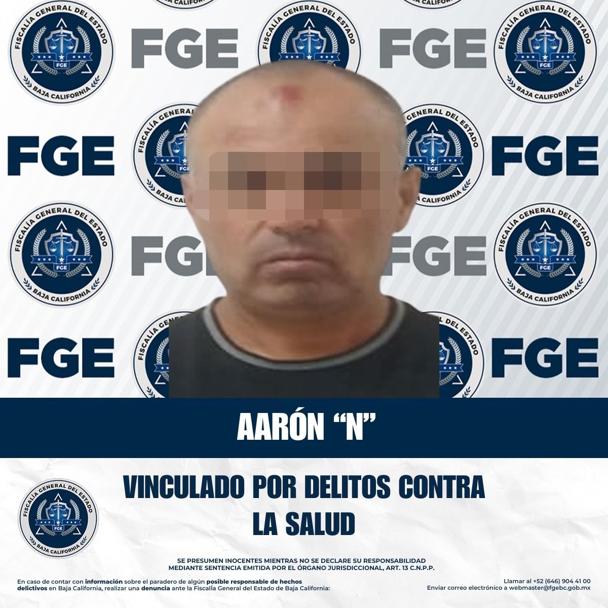 TECATE, BAJA CALIFORNIA. - La Fiscalía Regional de Tecate, a través de la Unidad de Investigación de Delitos con Detenido, logró que se impusiera la prisión preventiva oficiosa como medida cautelar, así como la vinculación a proceso en contra de Aarón “N”, por su presunta responsabilidad en delitos contra la salud en su modalidad de narcomenudeo, específicamente por posesión de metanfetamina.