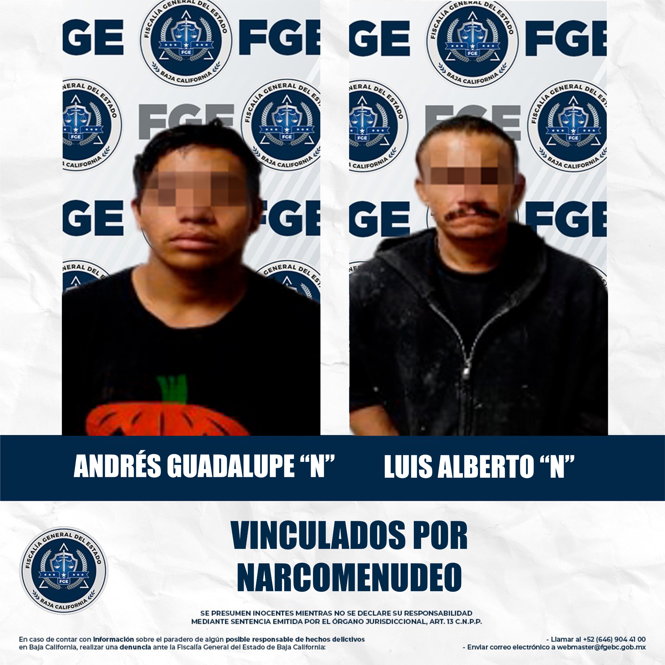 MEXICALI, BAJA CALIFORNIA. - La Fiscalía General del Estado continúa reforzando las acciones operativas para combatir el narcomenudeo, con el objetivo de inhibir la compra, venta y distribución de sustancias ilícitas. Como resultado de estas labores, se logró la vinculación a proceso de dos hombres por delitos contra la salud.