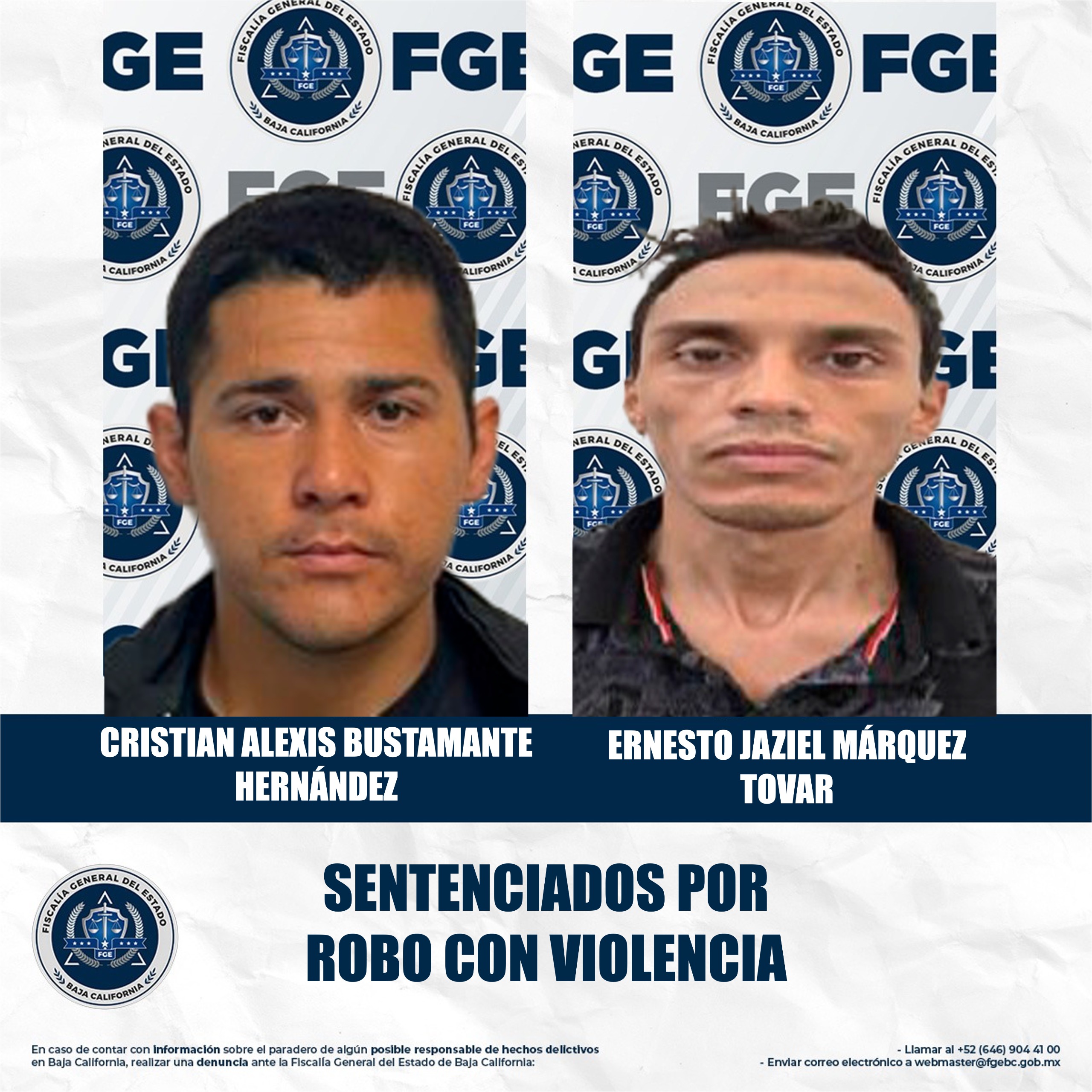 MEXICALI, BAJA CALIFORNIA. - La Fiscalía Regional de Mexicali obtuvo sentencias condenatorias en contra de dos personas responsables del delito de robo con violencia, derivadas de hechos distintos ocurridos en un establecimiento comercial y en un domicilio particular, ambos resueltos mediante procedimientos abreviados.
