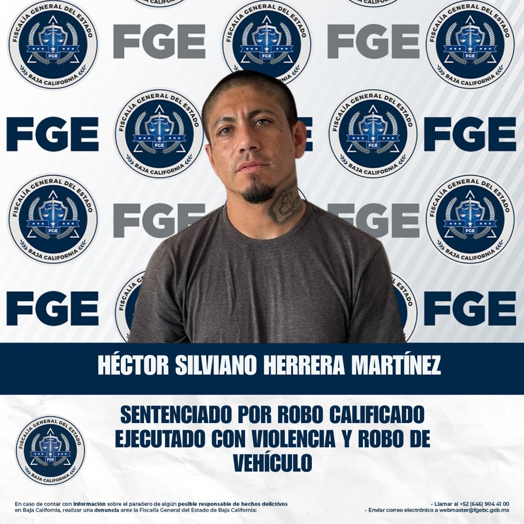 ENSENADA, BAJA CALIFORNIA. - La Fiscalía Regional de Ensenada obtuvo una sentencia condenatoria superior a seis años de prisión en contra de un sujeto responsable del delito de robo calificado, cometido por dos o más personas, ejecutado con violencia y robo de vehículo, como resultado de una investigación sólida y debidamente integrada.