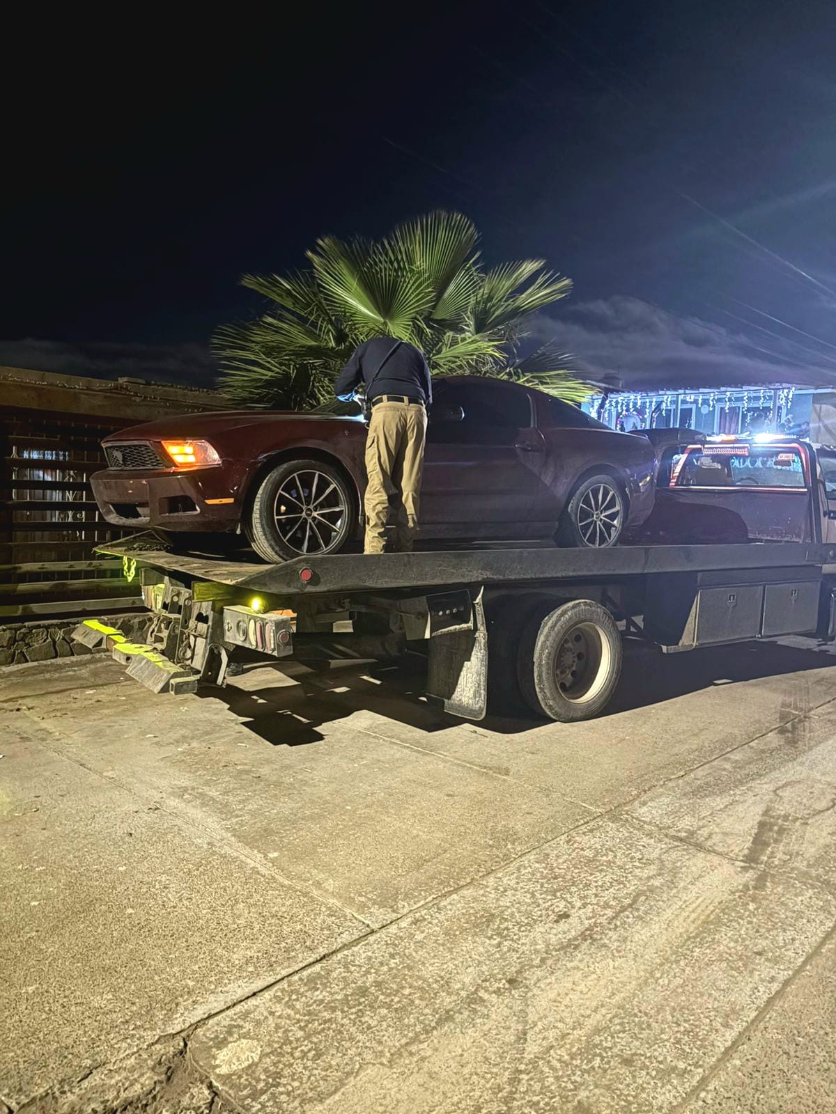 El cateo fue autorizado con la finalidad de asegurar un vehículo de motor marca Ford, línea Mustang, que presuntamente se encontraba en el lugar. Durante la diligencia, se localizó al interior del domicilio un auto Ford, línea Mustang, color guinda, modelo 2012, el cual, tras ser verificado en los sistemas correspondientes, resultó contar con reporte de robo vigente, con fecha 31 de diciembre de 2025, en la ciudad de Mexicali, Baja California.