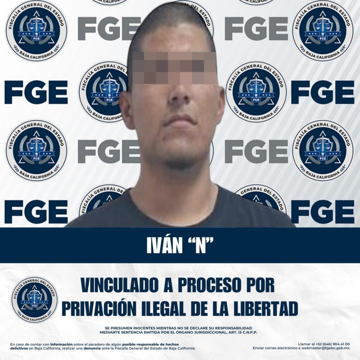 TECATE, BAJA CALIFORNIA. - La Fiscalía Regional de Tecate, a través de la Unidad de Investigación de Delitos con Detenido, logró la vinculación a proceso en contra de Iván “N” por los delitos de privación de la libertad personal agravada y delito federal consistente en la posesión de armas de fuego, cargadores y municiones de uso exclusivo del Ejército, Armada y Fuerza Aérea Permanente.