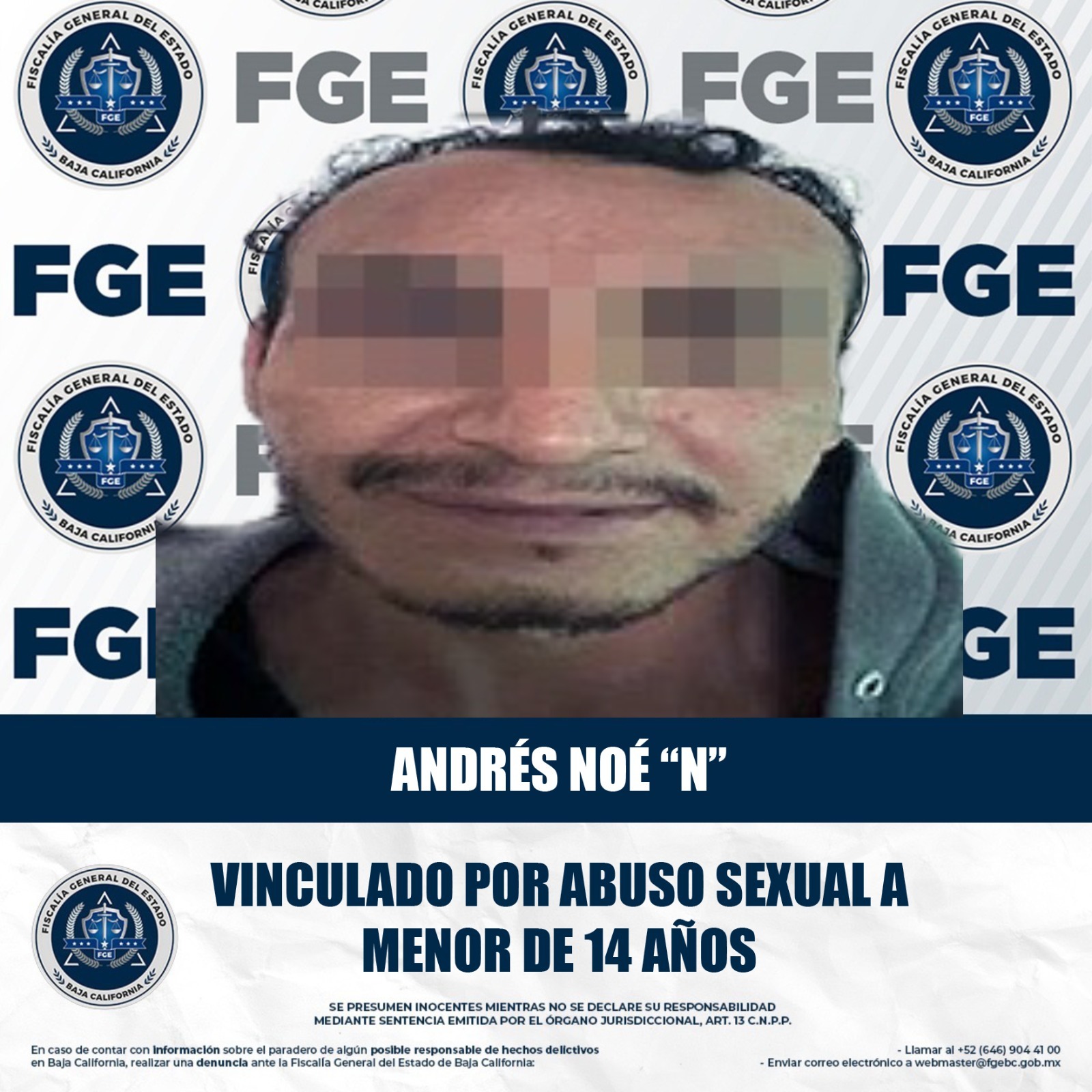 MEXICALI, BAJA CALIFORNIA. - La Fiscalía Regional de Mexicali, a través de la Unidad de Investigación de Delitos con Detenidos Oriente, obtuvo la vinculación a proceso de Andrés Noé “N”, esto por su presunta participación en delito de abuso sexual a menor de 14 años.