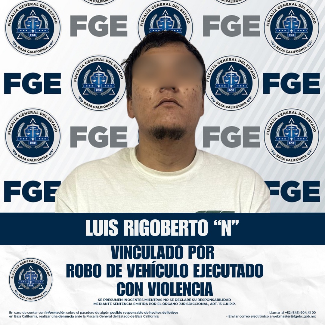 Tras la formulación de imputación por parte del Ministerio Público, el juez de control vinculó a proceso a Luis Rigoberto “N”, imponiéndole como medida cautelar la prisión preventiva justificada, y estableciendo un plazo para la investigación complementaria, con lo que la Fiscalía General del Estado reafirma su compromiso de combatir los delitos que afectan la seguridad y el patrimonio de los bajacalifornianos.