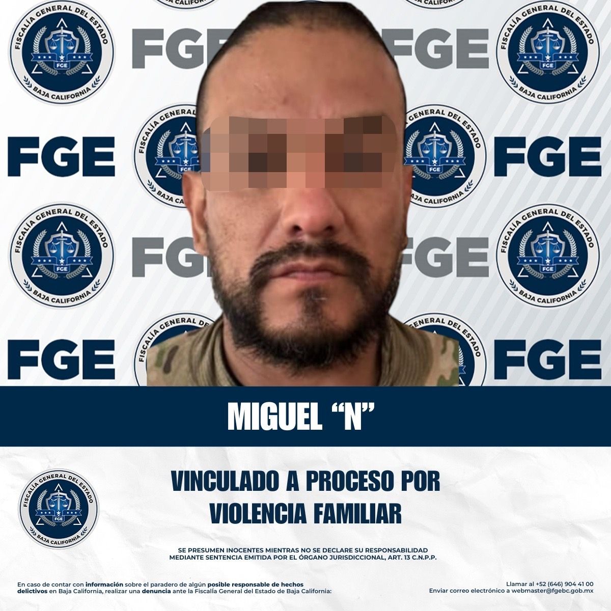 TECATE, BAJA CALIFORNIA. - La Fiscalía General del Estado, a través de la Fiscalía Especializada en Delitos contra las Mujeres por Razón de Género y la Unidad de Investigación de Delitos contra la Libertad Sexual y la Familia, zona Tecate, logró obtener la vinculación a proceso en contra de Miguel “N” por su probable responsabilidad en el delito de violencia familiar, en sus modalidades física y patrimonial.