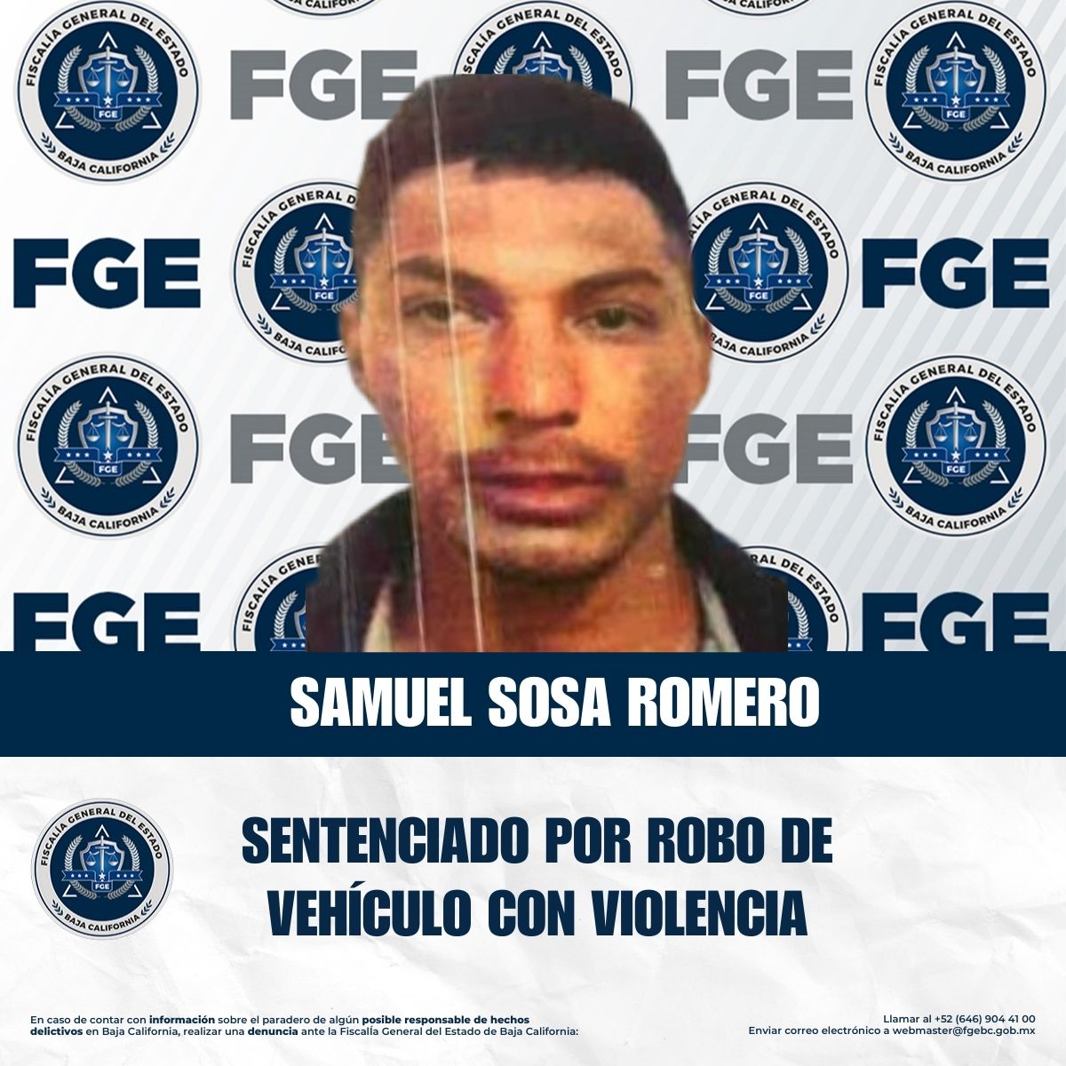 TIJUANA, BAJA CALIFORNIA. - La Fiscalía General del Estado, a través de la Unidad de Investigación Especializada en Robo de Vehículos, adscrita a la Fiscalía Regional de Tijuana, obtuvo una sentencia condenatoria en contra de Samuel Sosa Romero por el delito de robo de vehículo con violencia.