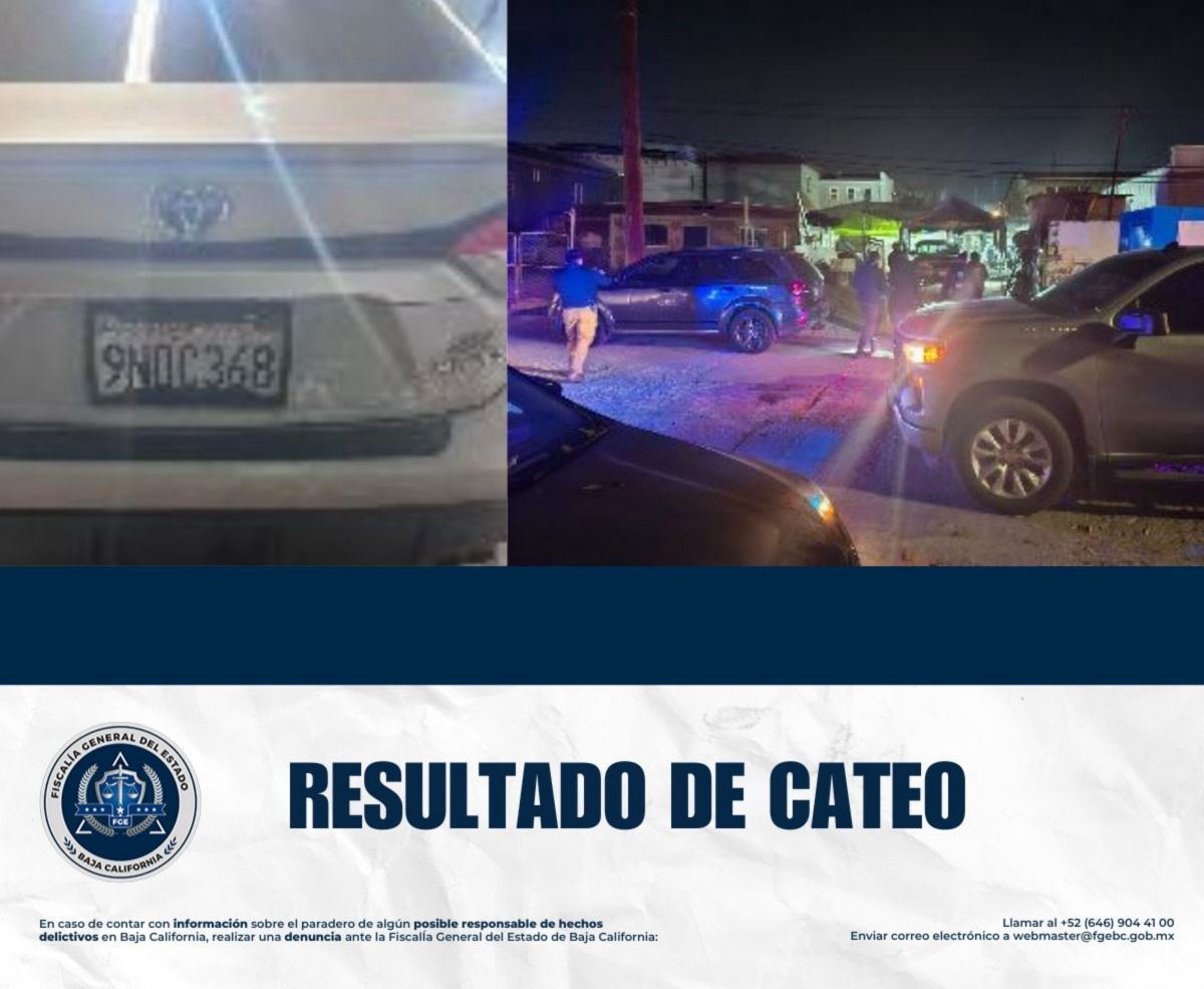 TECATE, BAJA CALIFORNIA. - La Fiscalía Regional de Tecate, a través de la Unidad Especializada en Delitos Contra las Personas y su libertad, logró la recuperación de un vehículo implicado en los delitos de daño en propiedad ajena por culpa y lesiones por culpa, tras realizar un cateo en una vivienda en la ciudad.