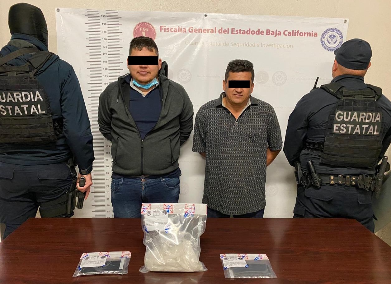 Elementos de la Fiscalía General del Estado (FGE), pusieron bajo arresto a dos sujetos por tener en su poder varios envoltorios de droga tras un recorrido preventivo.