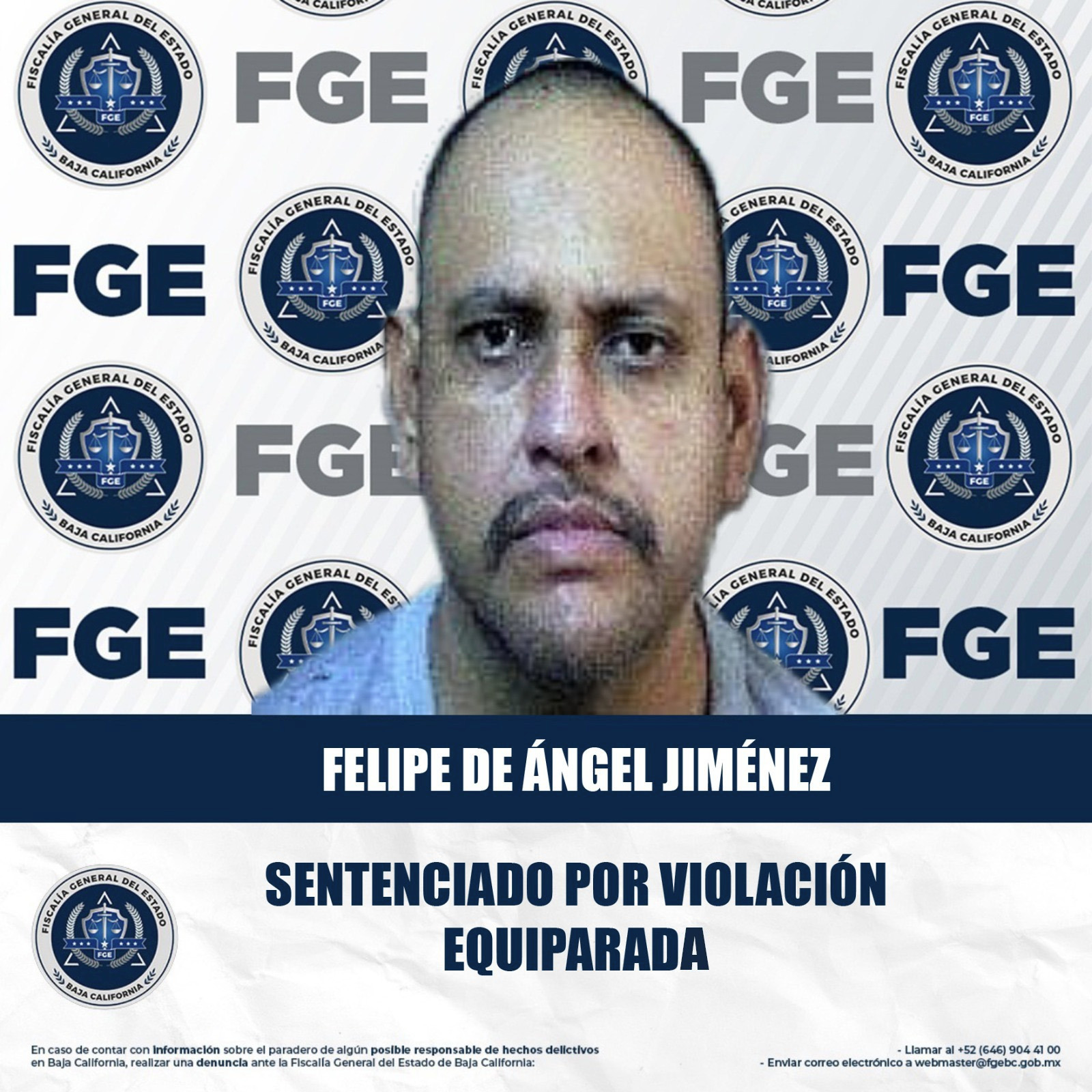 MEXICALI, BAJA CALIFORNIA. - Por su responsabilidad en el delito de violación equiparada, la Fiscalía General del Estado (FGE) obtuvo una sentencia condenatoria de 12 años de prisión en contra de Felipe de Ángel Jiménez.