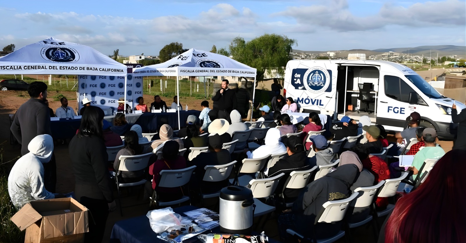 SAN QUINTÍN, BAJA CALIFORNIA. - Bajo la encomienda de la Fiscal General, Dra. Ma. Elena Andrade Ramírez, la Fiscalía General del Estado realizó una jornada de servicios en la colonia Buena Vista, a través del programa “Fiscal Enlace Contigo”, con el propósito de fortalecer el acercamiento institucional y facilitar la procuración de justicia de manera directa a la comunidad.