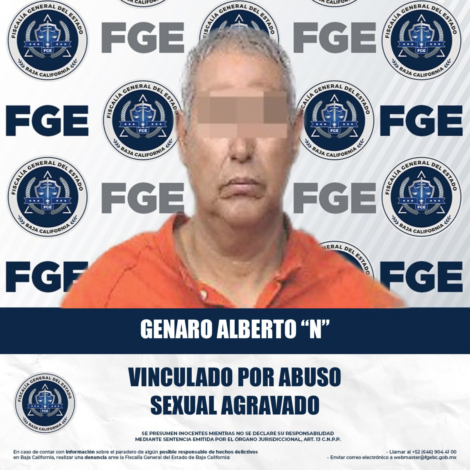 MEXICALI, BAJA CALIFORNIA. - La Fiscalía General del Estado (FGE), a través de la Fiscalía Especializada en Delitos Contra Mujeres por Razón de Género, logró la vinculación de un imputado de un delito de abuso sexual agravado cometido en agravio de una menor.