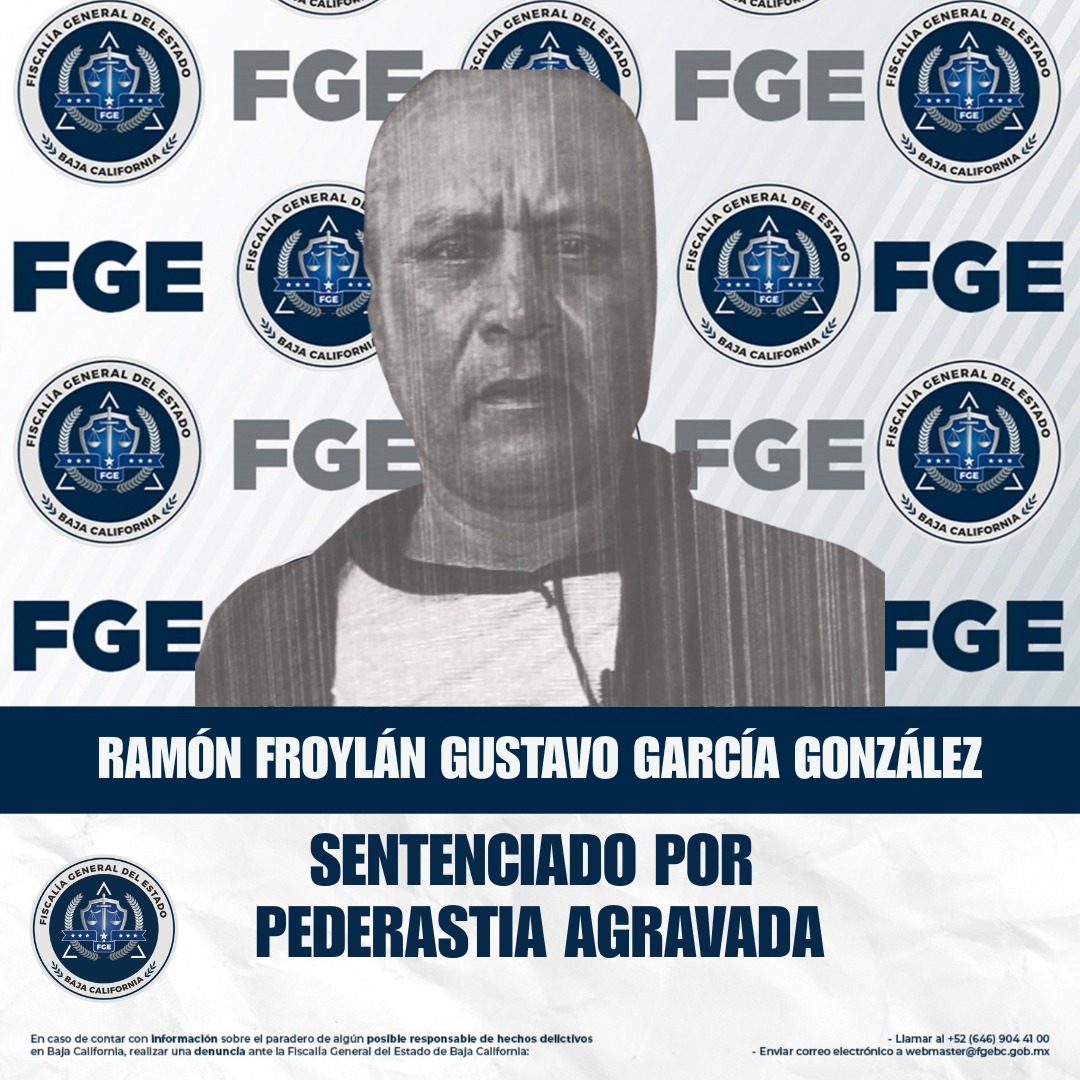 SAN QUINTÍN, BAJA CALIFORNIA. - La Fiscalía General del Estado, a través de la Fiscalía Especializada en Delitos Cometidos Contra la Mujer por Razón de Género, obtuvo una sentencia condenatoria de 11 años de prisión en contra de Ramón Froylán Gustavo García González, responsable del delito de pederastia agravada.