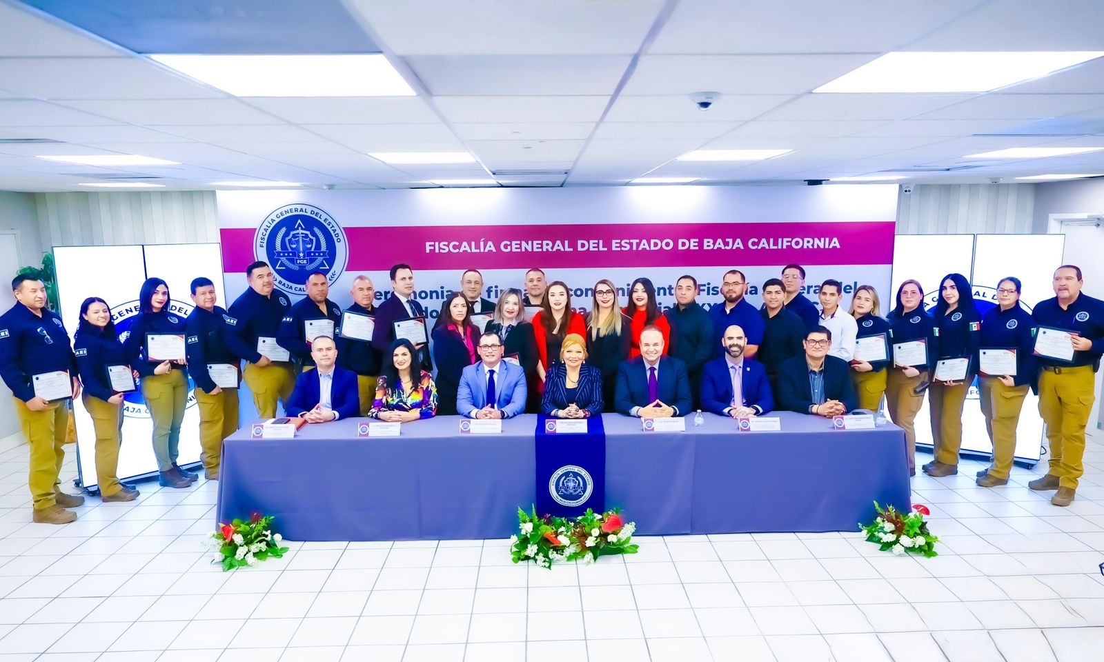 En la firma del convenio estuvieron presentes el Coordinador de Gabinete de la FGE, Juan Carlos Buenrostro Molina; el Fiscal Central, Jesús Manuel López Moreno; y el comandante de la Agencia Estatal de Mexicali, Julio Rodríguez Campos.