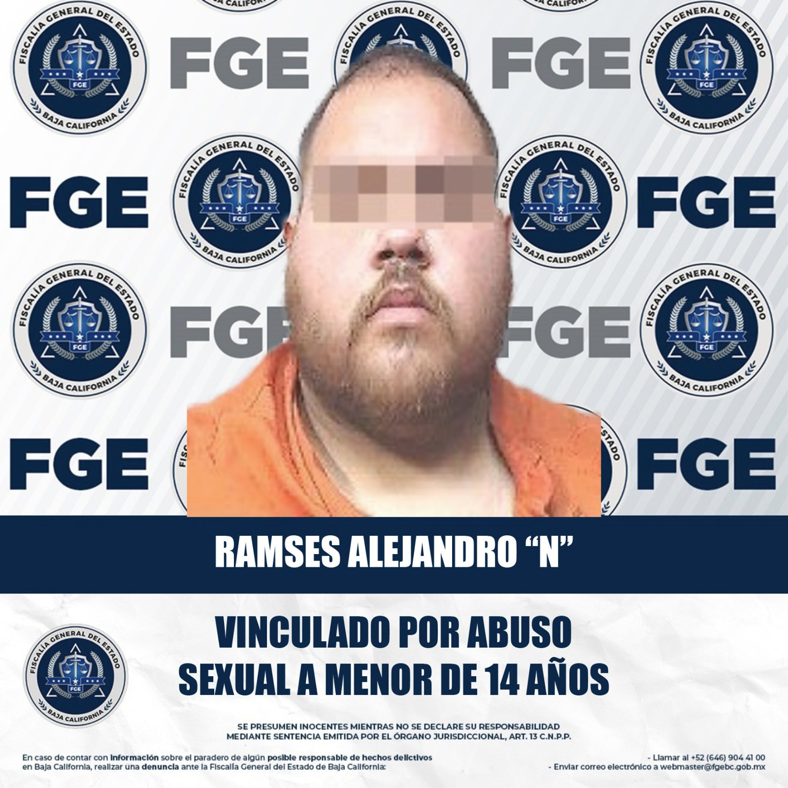MEXICALI, BAJA CALIFORNIA. - La Fiscalía General del Estado (FGE), a través de la Fiscalía Especializada en Delitos Contra Mujeres por Razón de Género, obtuvo un auto de vinculación a proceso en contra de un individuo por su presunta responsabilidad en el delito de abuso sexual a una persona menor de 14 años.