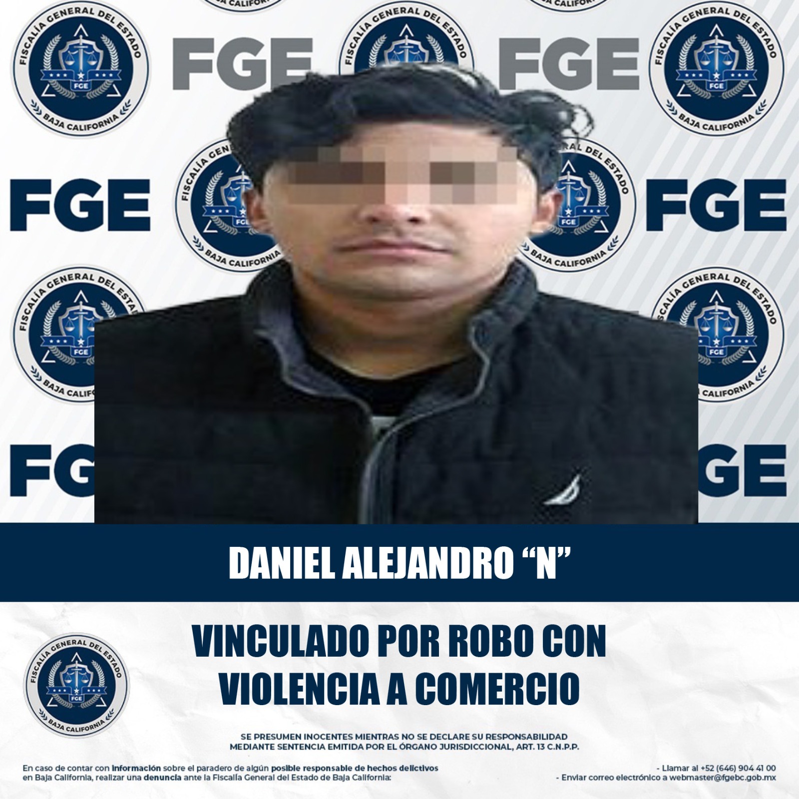 MEXICALI, BAJA CALIFORNIA. - La Fiscalía Regional de Mexicali logró doble vinculación a proceso de Daniel Alejandro “N”, relacionado en el delito de robo calificado a comercio abierto al público con violencia.