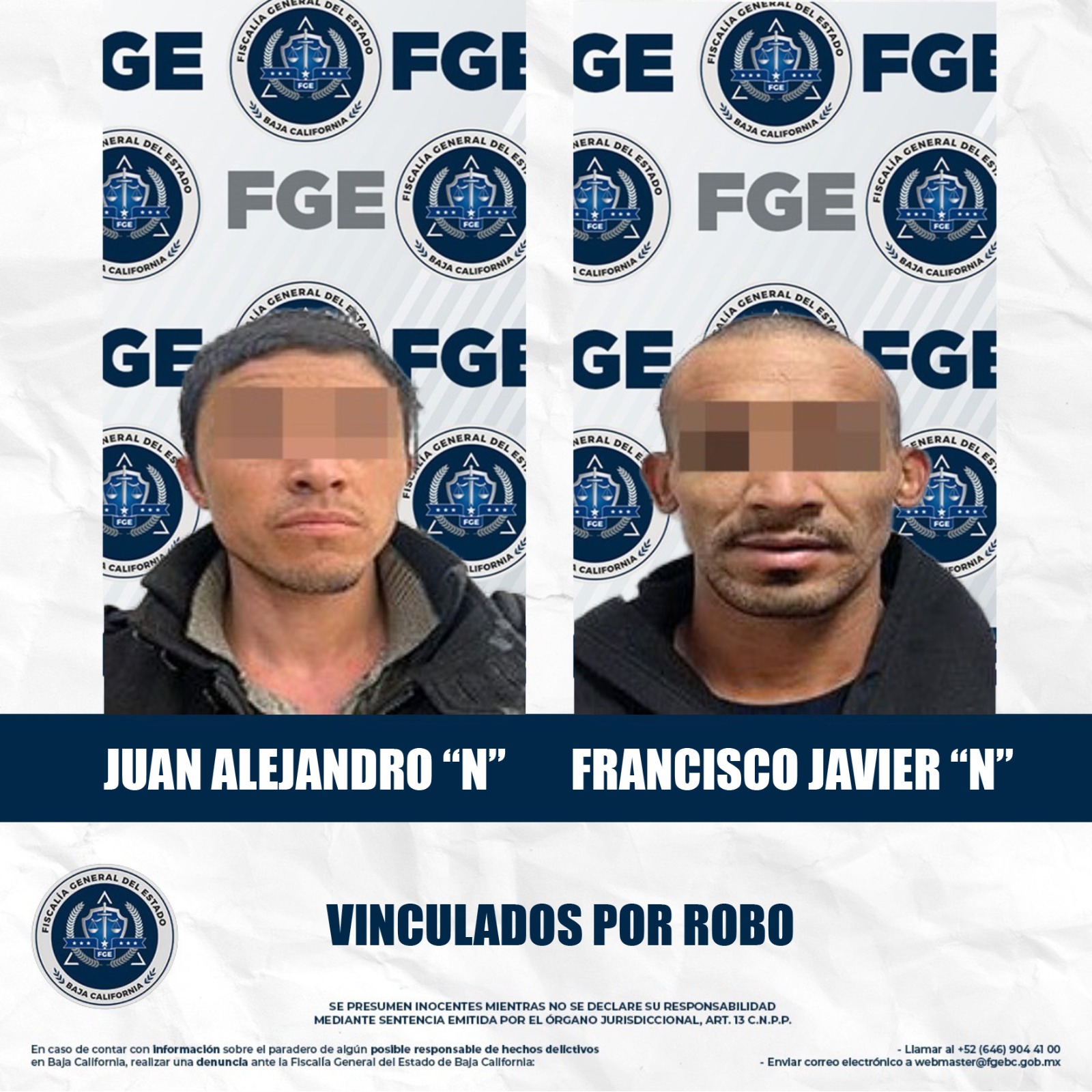 MEXICALI, BAJA CALIFORNIA. - La Fiscalía Regional de Mexicali, a través de la Unidad de Investigación de Robo Poniente, logró, mediante la presentación de pruebas contundentes, la vinculación de dos hombres relacionados en incidentes de robos.