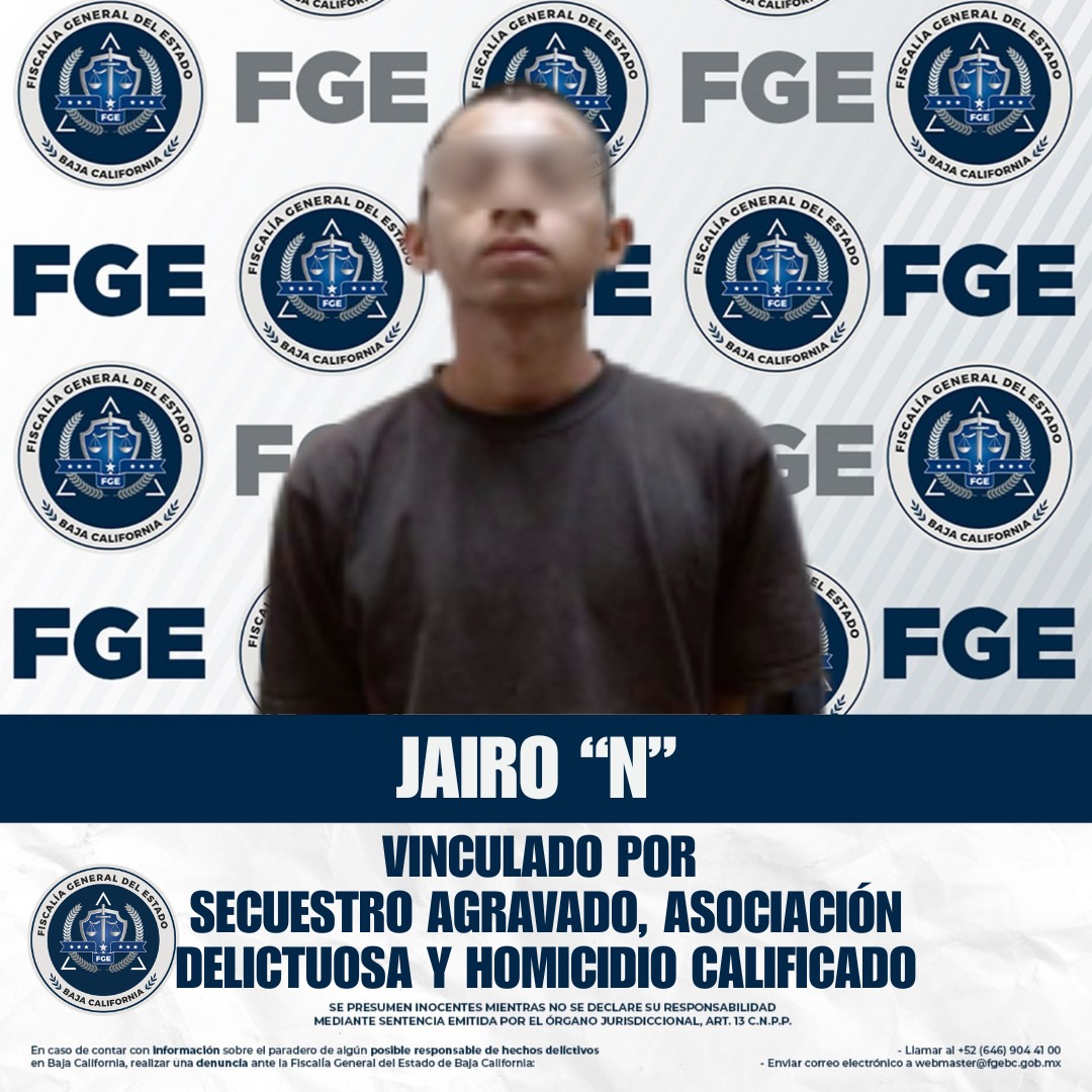 SAN QUINTÍN, BAJA CALIFORNIA. - La Fiscalía General del Estado informa que Jairo “N” fue vinculado a proceso por los delitos de secuestro agravado, asociación delictuosa y homicidio calificado, en relación con el homicidio de un joven ocurrido la noche del 24 de agosto de 2025, en el municipio de San Quintín. Con esta acción, suman cinco personas detenidas dentro de este caso.