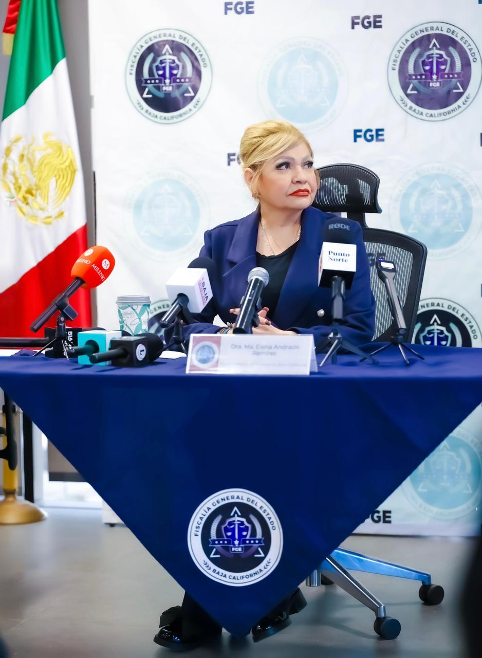 TIJUANA, BAJA CALIFORNIA. - La Fiscal General del Estado, Dra. Ma. Elena Andrade Ramírez, informó en conferencia de prensa que, como resultado del Operativo Fuerza Fiscalía, implementado de manera permanente en toda la entidad, se han logrado avances significativos en investigaciones y detenciones relevantes, reafirmando el compromiso institucional de investigar cada caso hasta las últimas consecuencias.