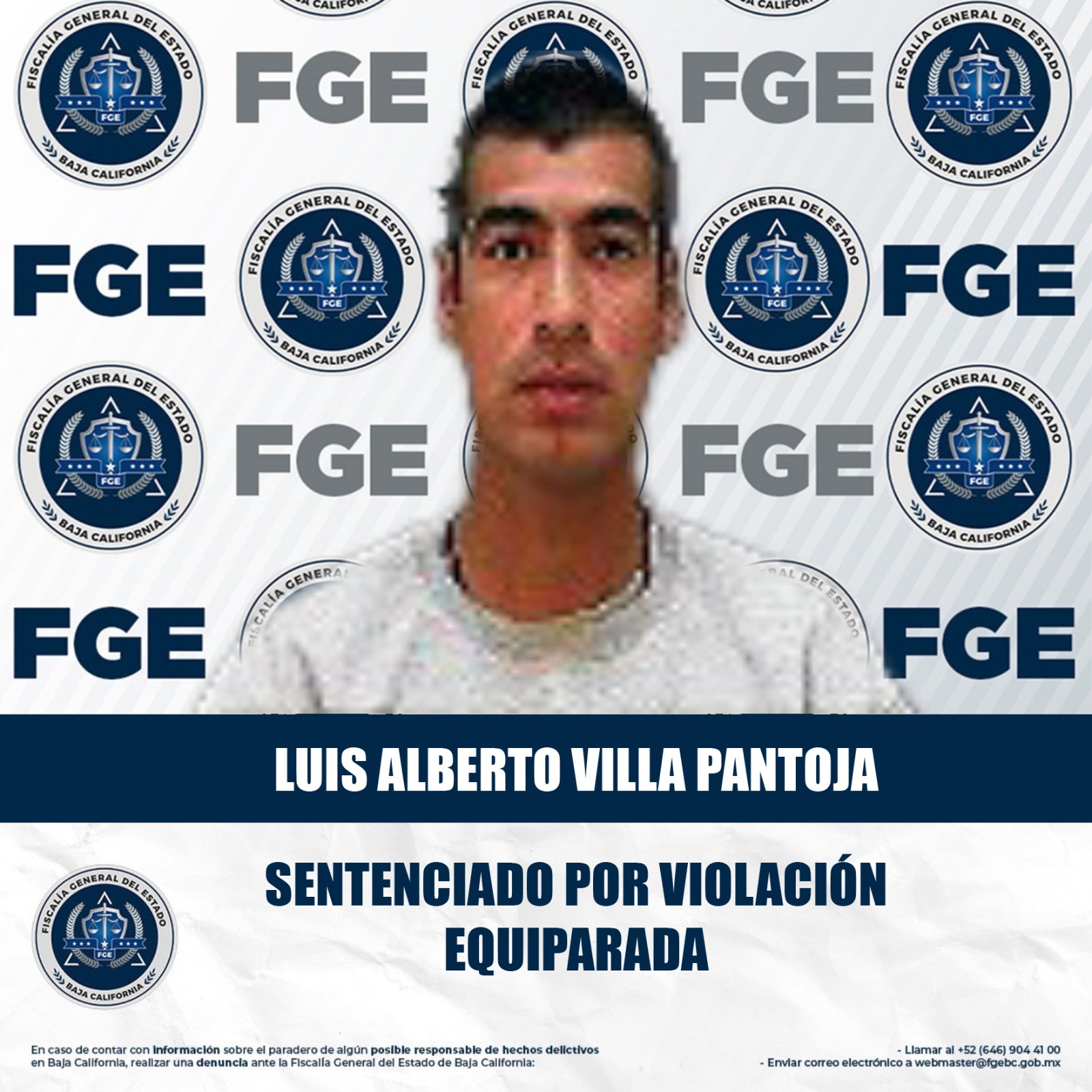 MEXICALI, BAJA CALIFORNIA. - Con base en las pruebas presentadas por la Fiscalía General del Estado (FGE), se obtuvo un fallo condenatorio de 12 años de prisión en contra de Luis Alberto Villa Pantoja, penalmente responsable del delito de violación equiparada.