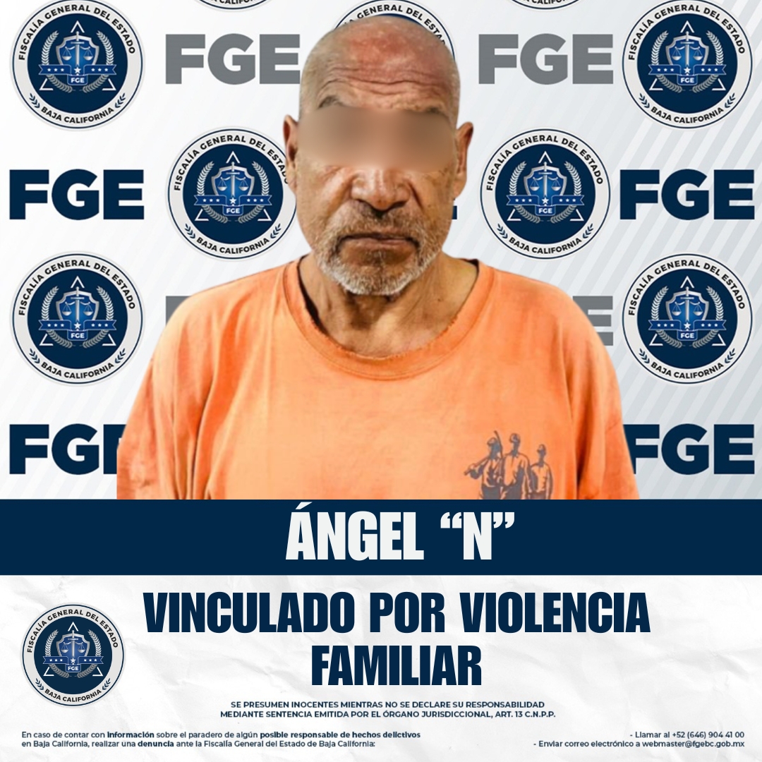ENSENADA, BAJA CALIFORNIA. - La Fiscalía Regional de Ensenada, a través de la Unidad con Detenido, obtuvo auto de vinculación a proceso contra Ángel “N” por el delito de violencia familiar.