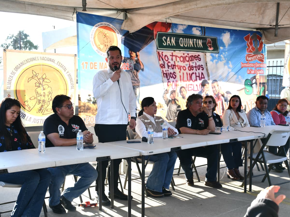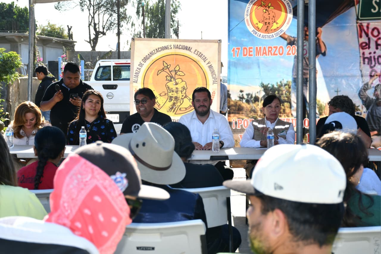 SAN QUINTÍN, BAJA CALIFORNIA. - La Fiscalía General del Estado tuvo presencia en el Onceavo Aniversario del movimiento histórico de Jornaleras y Jornaleros Agrícolas, realizado la tarde del martes 17 de marzo en la Delegación tradicional del Fraccionamiento Las Misiones, en Vicente Guerrero, municipio de San Quintín, evento convocado por la Alianza de Organizaciones Nacional, Estatal y Municipal por la Justicia Social.