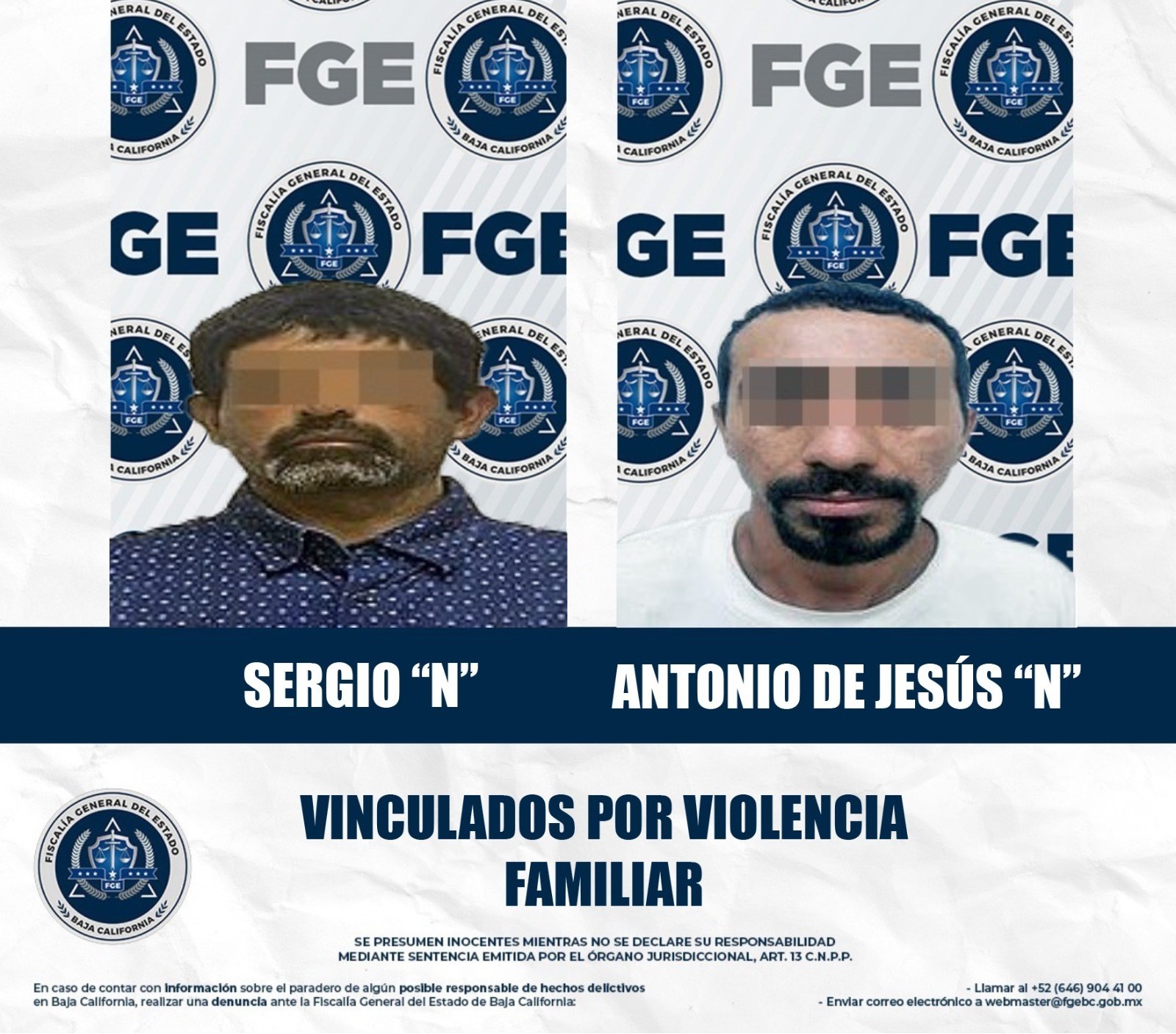 MEXICALI, BAJA CALIFORNIA. - La Fiscalía Regional de Mexicali, a través de la Unidad de Investigación de Delitos Foránea Guadalupe Victoria, y la Foránea Ciudad Morelos, obtuvo la vinculación a proceso de dos hombres imputados por el delito de violencia familiar.