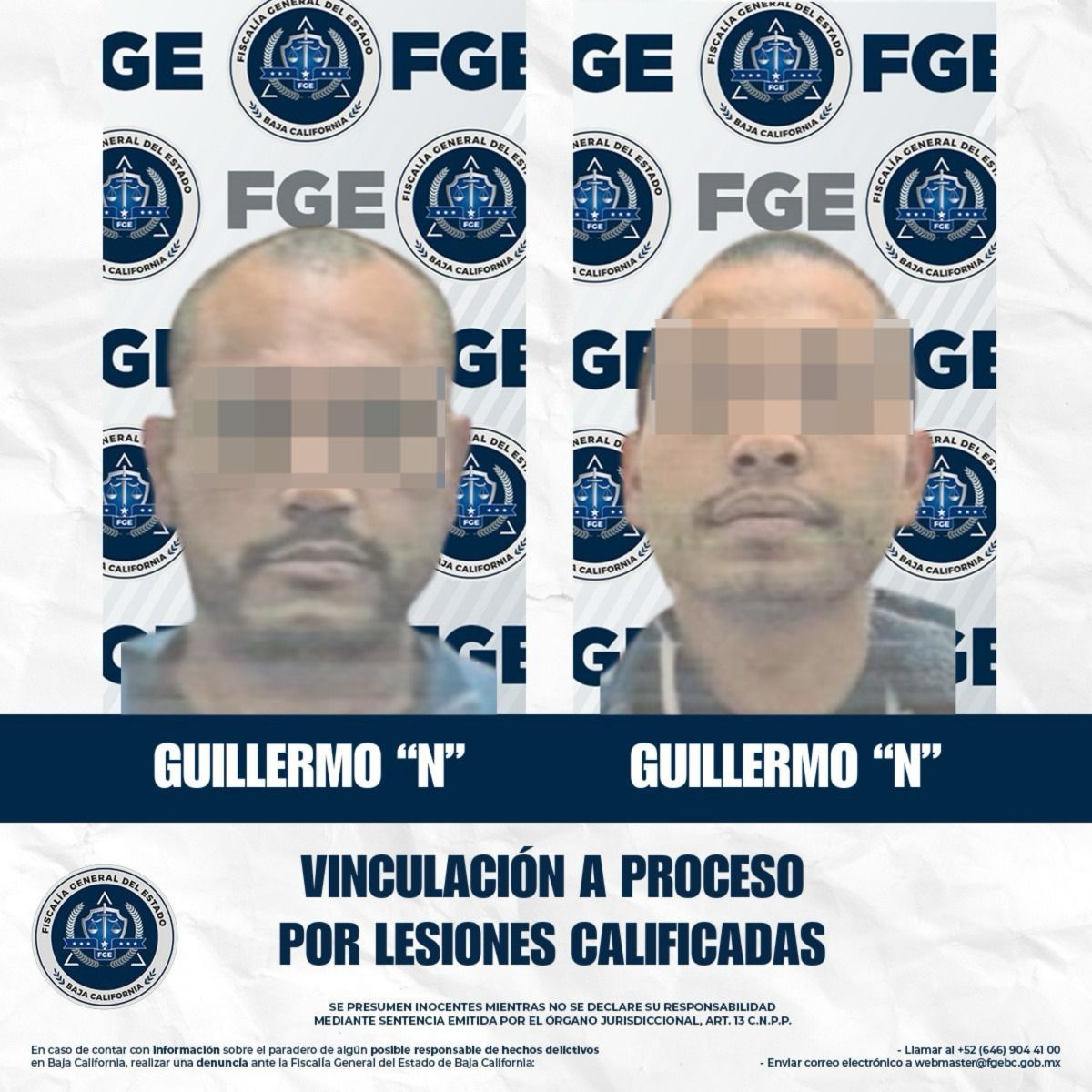 TIJUANA, BAJA CALIFORNIA. - La Fiscalía Regional de Tijuana informa que, dos sujetos han quedado vinculado a proceso penal por su presunta responsabilidad en el delito de lesiones calificadas, de acuerdo con la investigación realizada por el Ministerio Público basada en los hechos ocurridos el 9 de marzo de 2026, en el ejido Maclovio Rojas de esta ciudad.