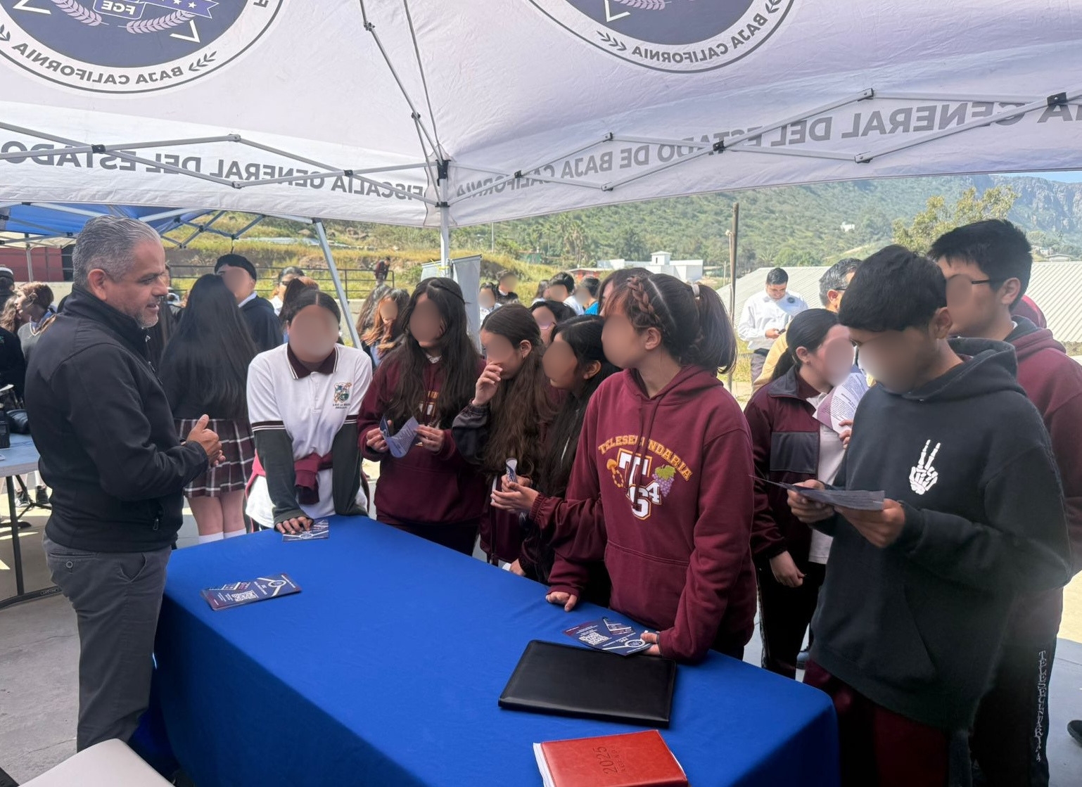 Durante este acercamiento, se contó con la presencia del fiscal regional de Ensenada, Lic. Miguel Ángel Pérez Rojas, quien, junto con otras autoridades, informó a los estudiantes con el objetivo de promover la seguridad, la educación y la salud mental en la comunidad estudiantil, brindando herramientas para prevenir e inhibir conductas delictivas.