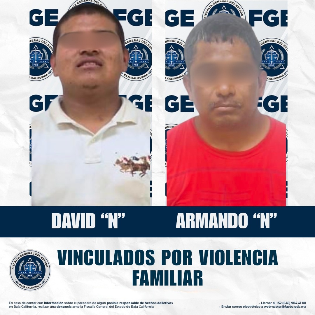 SAN QUINTÍN, BAJA CALIFORNIA. - La Fiscalía Regional de San Quintín logró la vinculación a proceso de dos imputados, David “N” y Armando “N”, por su presunta participación en distintos casos relacionados con el delito de violencia familiar, como resultado de las investigaciones realizadas.