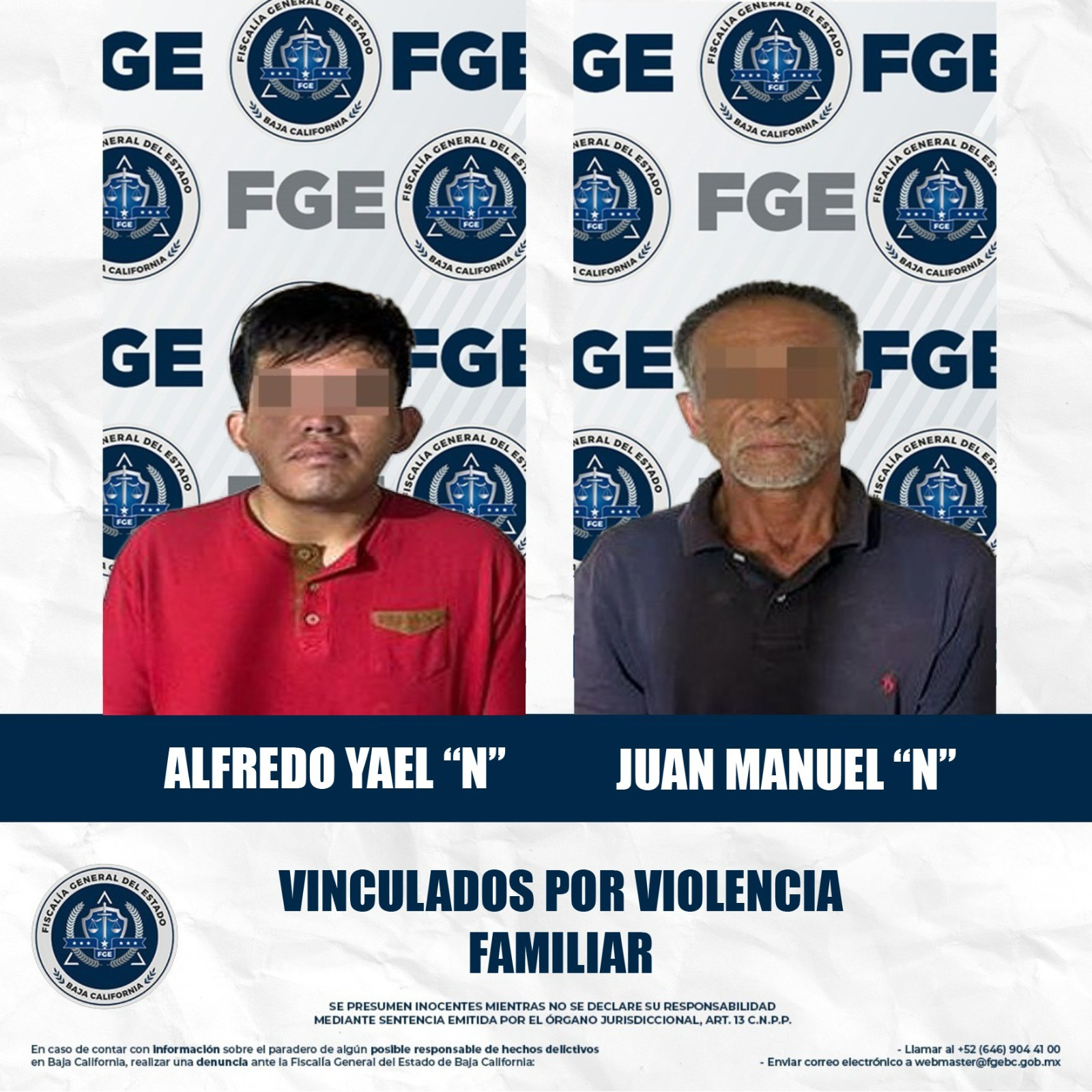 MEXICALI, BAJA CALIFORNIA. - La Fiscalía Regional de Mexicali, a través de la Unidad de Investigación de Delitos Foránea de Ciudad Morelos, logró el inicio de procesos penales contra dos individuos presuntamente responsables del delito de violencia familiar en incidentes por separado.