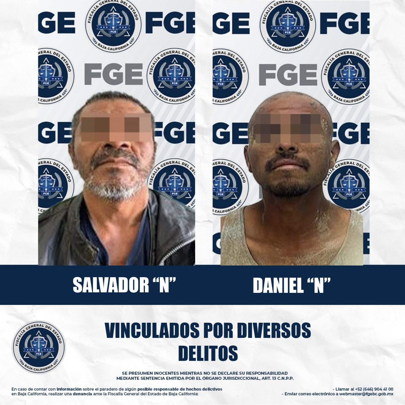 MEXICALI, BAJA CALIFORNIA. - La Fiscalía Regional de Mexicali, a través de la Unidad de Investigación de Delitos Foránea de Guadalupe Victoria, obtuvo el inicio de procesos penales en contra de dos individuos detenidos en incidentes distintos ocurridos en la zona rural.