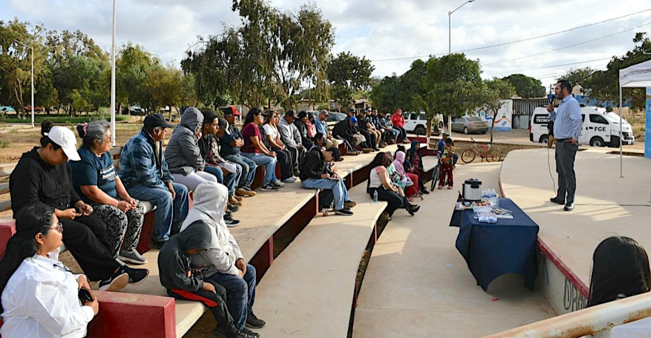 SAN QUINTÍN, BAJA CALIFORNIA. - La Fiscalía General del Estado, a través del programa Fiscal Enlace Contigo, llevó a cabo un acercamiento con habitantes de la colonia Flores Magón, en el municipio de San Quintín, con el objetivo de acercar los servicios institucionales a la ciudadanía.