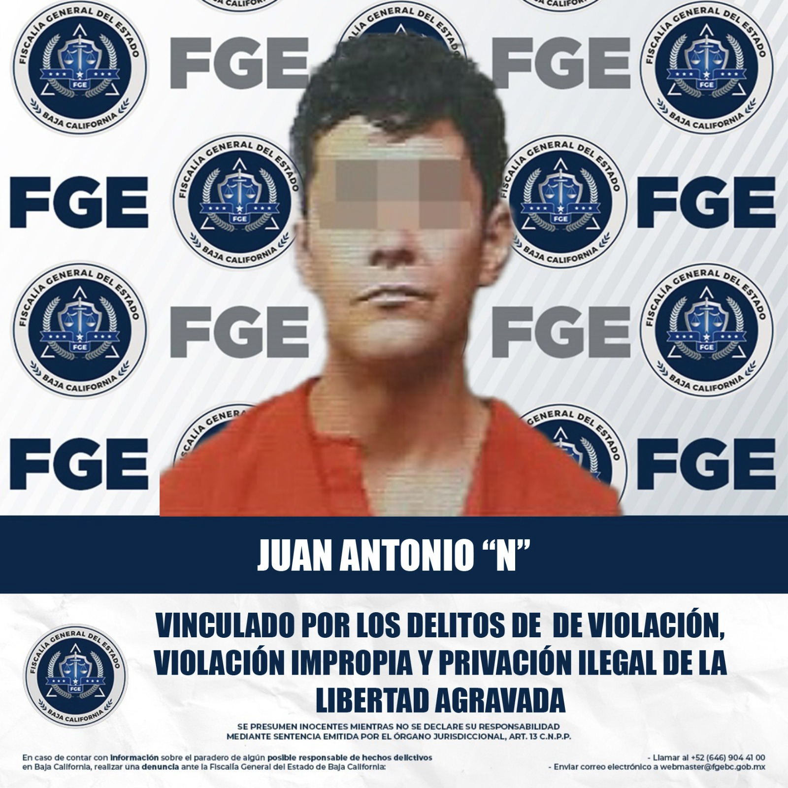 MEXICALI, BAJA CALIFORNIA. - La Fiscalía General del Estado (FGE), a través de la Fiscalía Especializada en Delitos Relacionados con la Violencia de Género contra las Mujeres logró la obtención de un auto de vinculación a proceso en contra de un sujeto, presunto responsable de los delitos de violación, violación impropia y privación ilegal de la libertad agravada.