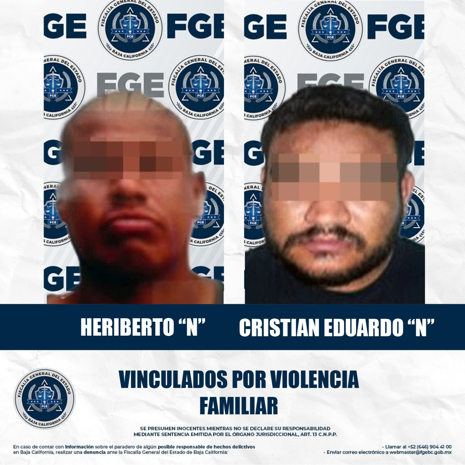 MEXICALI, BAJA CALIFORNIA. - La Fiscalía Regional de Mexicali, a través de la Unidad de Investigación de Delitos con Detenidos Poniente y Oriente, logró la vinculación a proceso de Heriberto “N” y Cristian Eduardo “N” por el delito de violencia familiar.